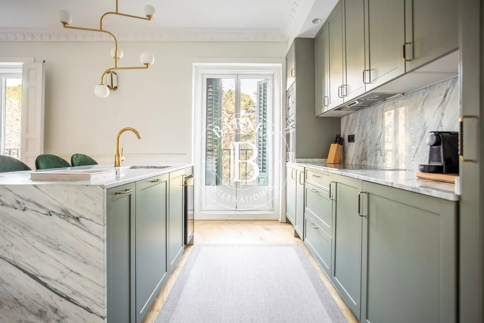 L’appartement se distingue par sa grande luminosité grâce aux larges fenêtres du salon, créant une atmosphère spacieuse et agréable. Le salon-salle à manger constitue le cœur du logement, offrant un espace convivial et polyvalent, relié à une cuisine moderne entièrement équipée avec des appareils de dernière génération.