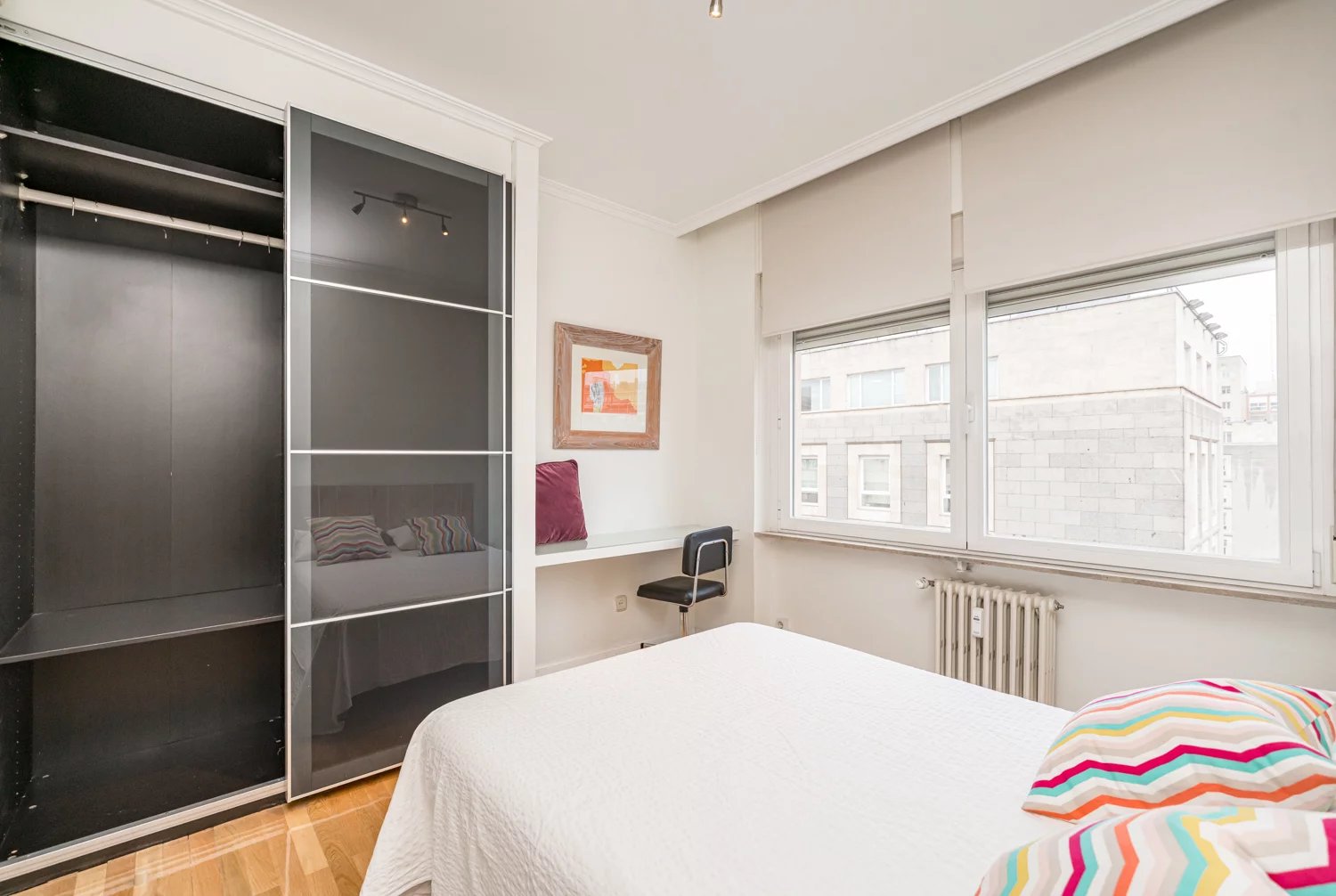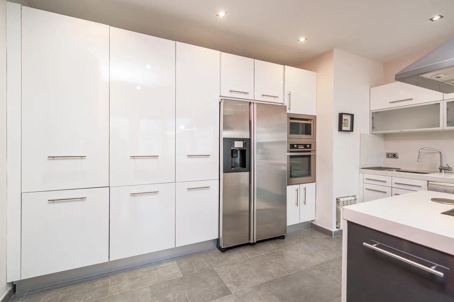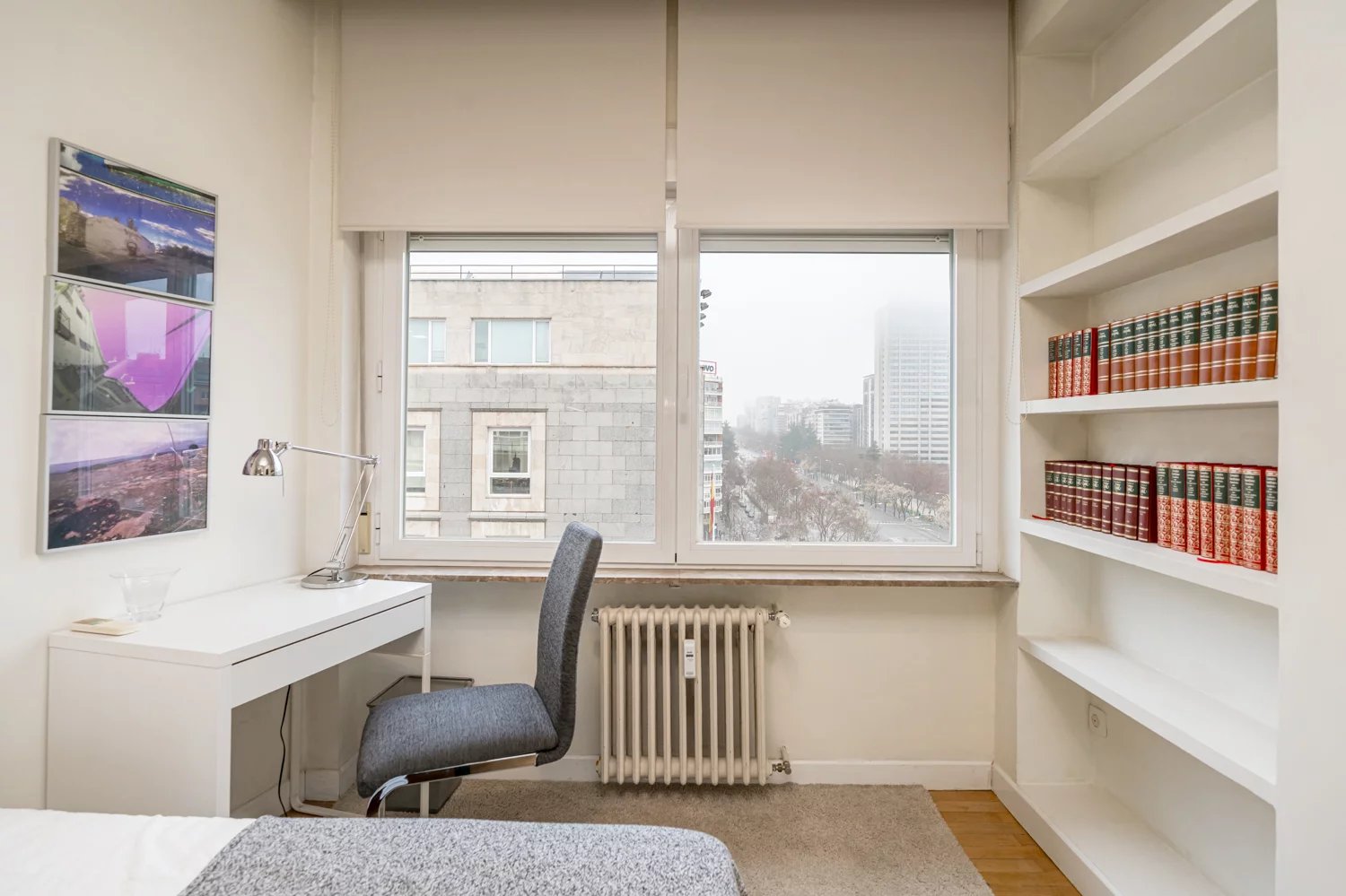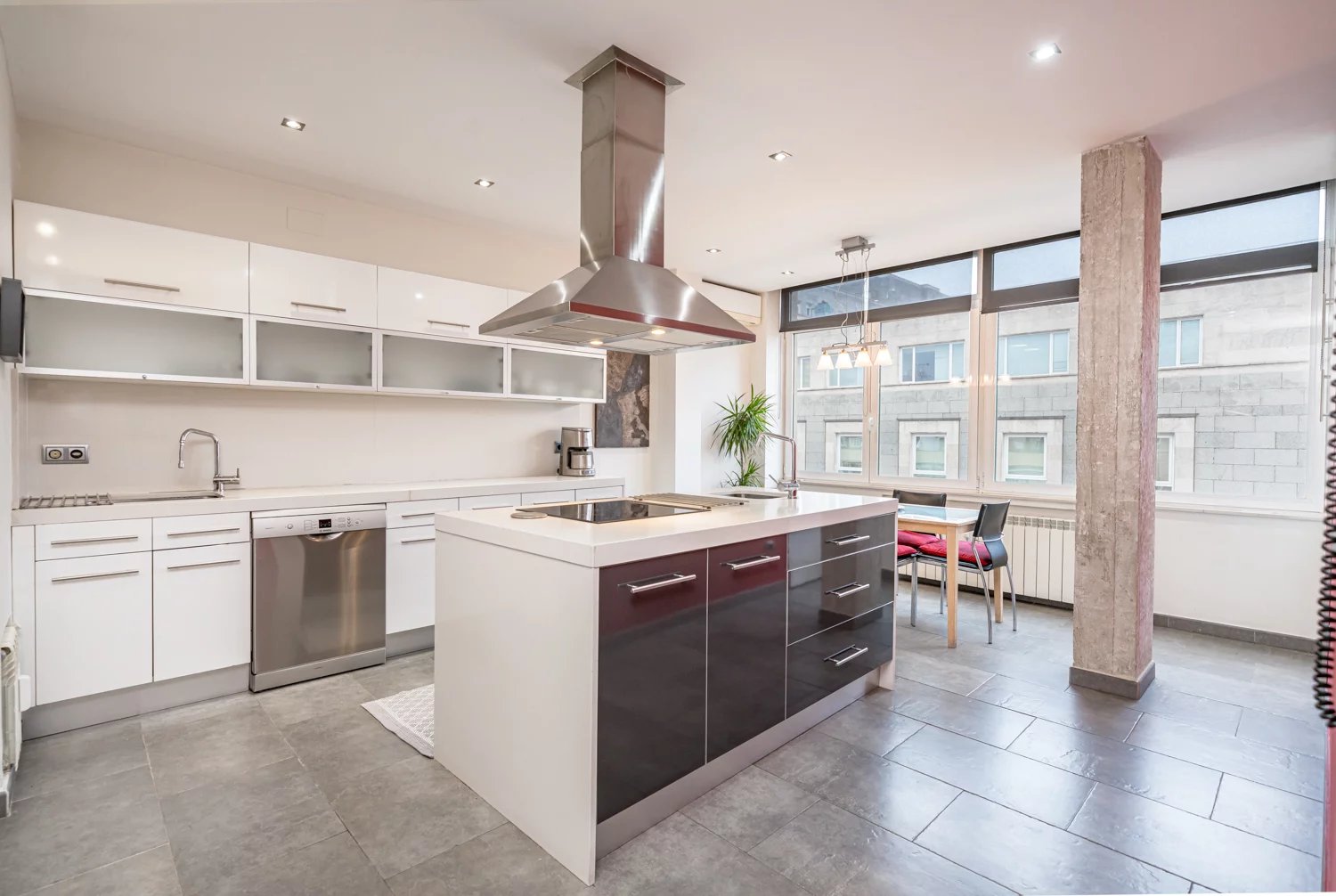 Grâce à ses grandes baies vitrées, la lumière naturelle est omniprésente dans toutes les pièces, tant dans les espaces de vie que dans la cuisine, créant un lien permanent avec le paysage urbain et permettant de profiter de vues dégagées sur la Castellana, un véritable privilège dans ce quartier.