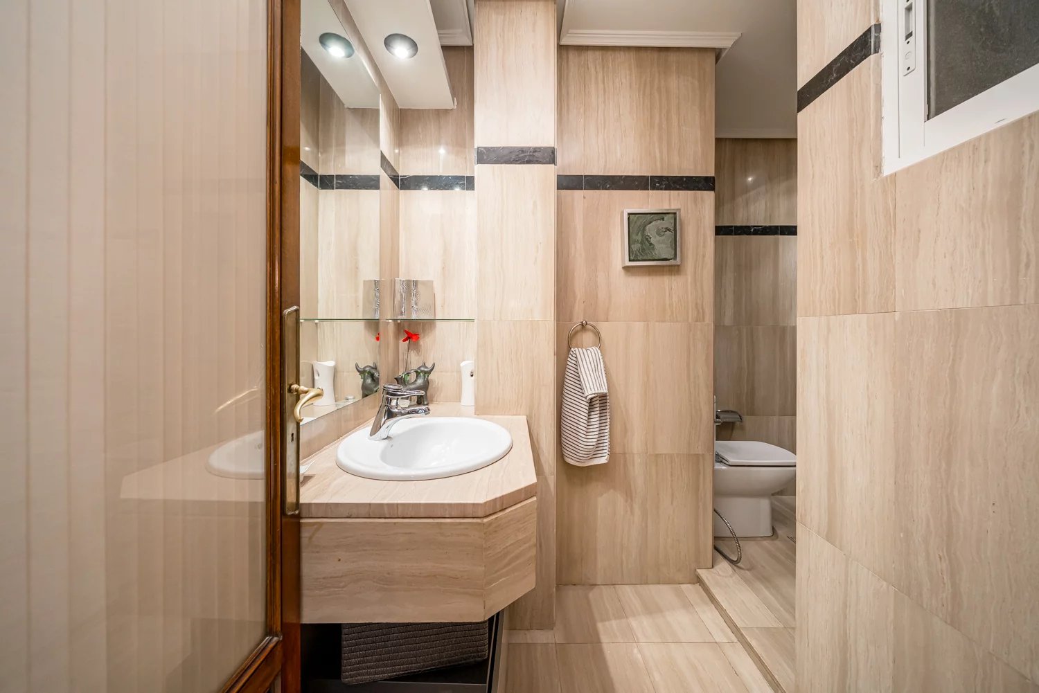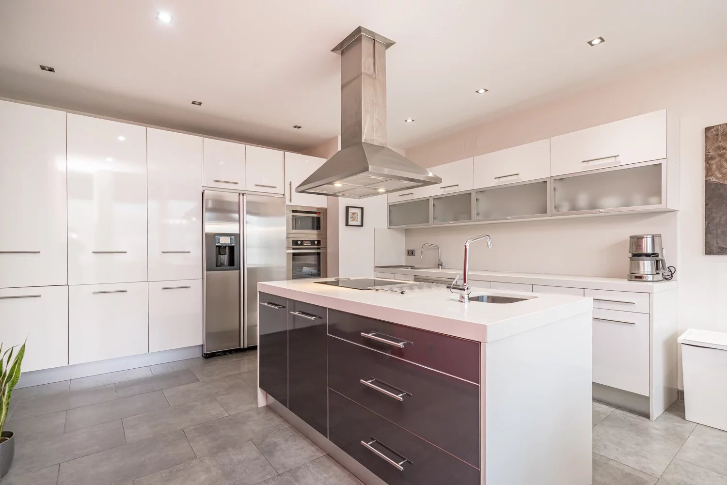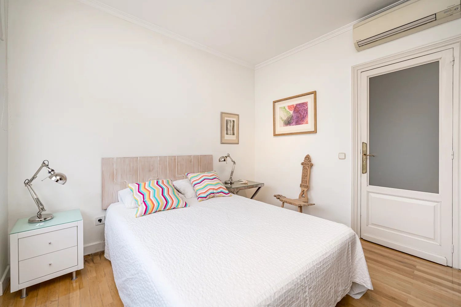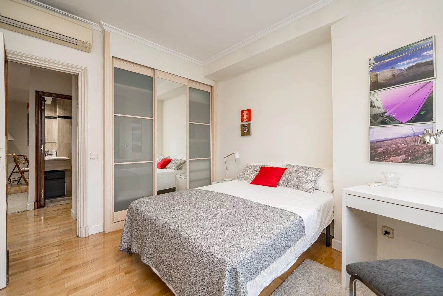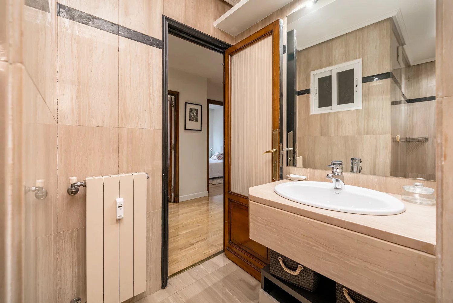 Grâce à ses grandes baies vitrées, la lumière naturelle est omniprésente dans toutes les pièces, tant dans les espaces de vie que dans la cuisine, créant un lien permanent avec le paysage urbain et permettant de profiter de vues dégagées sur la Castellana, un véritable privilège dans ce quartier.