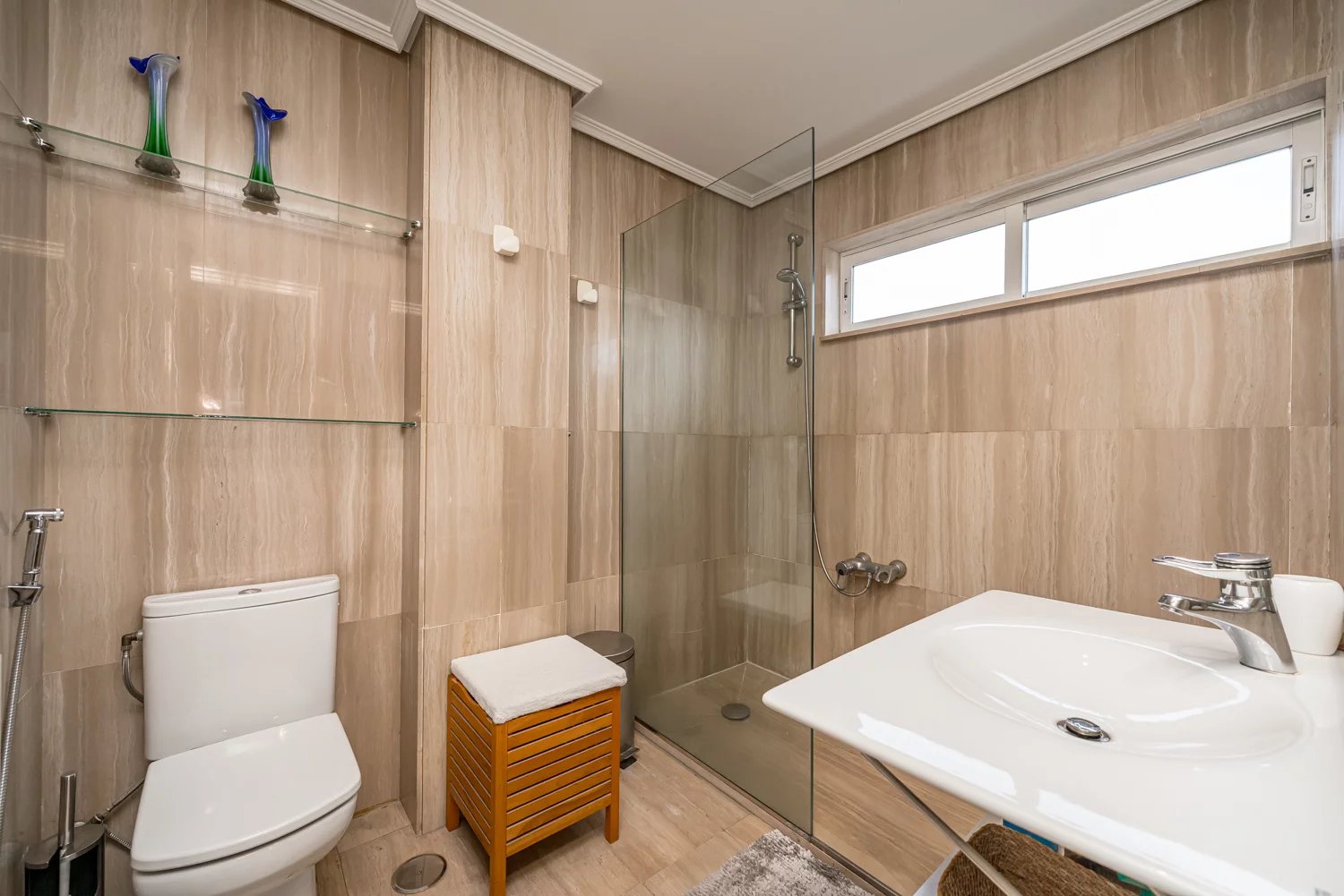 Le bien se distingue par sa distribution élégante et fonctionnelle, proposant trois chambres spacieuses et deux salles de bains complètes, dont une en suite, apportant une agréable sensation d’espace et de confort. Il convient parfaitement à une vie familiale comme à des profils professionnels en quête de qualité et d’emplacement.