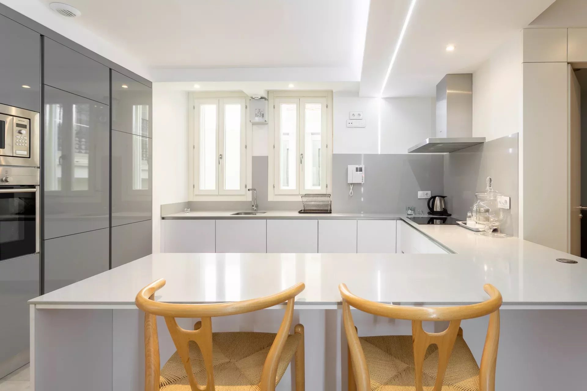 L'immeuble a été entièrement rénové à un niveau très élevé avec des patios et des escaliers magnifiquement restaurés, un ascenseur moderne et d'excellentes finitions dans toutes les parties communes, impeccablement neuves. La décoration intérieure de l'appartement est très moderne avec d'excellentes qualités et il est loué entièrement meublé et équipé avec tous les types d'appareils électroménagers de marque supérieure et tous les services entièrement fonctionnels, y compris le wifi et plusieurs téléviseurs. En bref, un appartement de luxe prêt à être emménagé.