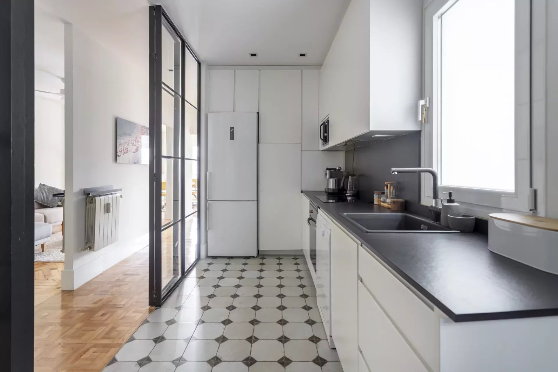 Situé dans un immeuble avec ascenseur, cet appartement exclusif se trouve dans un environnement calme mais animé, à proximité des commerces, restaurants, espaces verts et bien desservi par les transports publics.