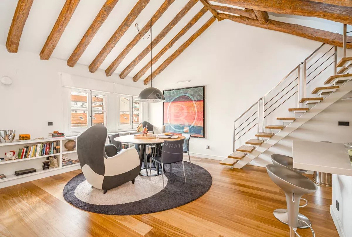 Situé dans le prestigieux quartier de Salamanca — plus précisément dans l’enclave prisé de Recoletos —, ce penthouse occupe une place de choix parmi les plus belles adresses de la ville, avec son énergie dynamique à deux pas de votre porte. Un ascenseur vous transporte sans effort jusqu’à ce refuge au cinquième étage, transformant chaque retour à la maison en une montée empreinte de grâce.