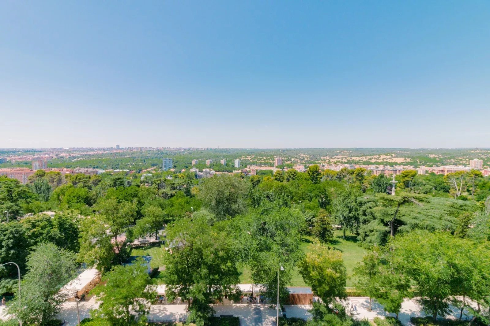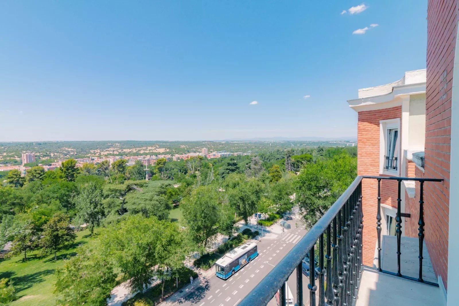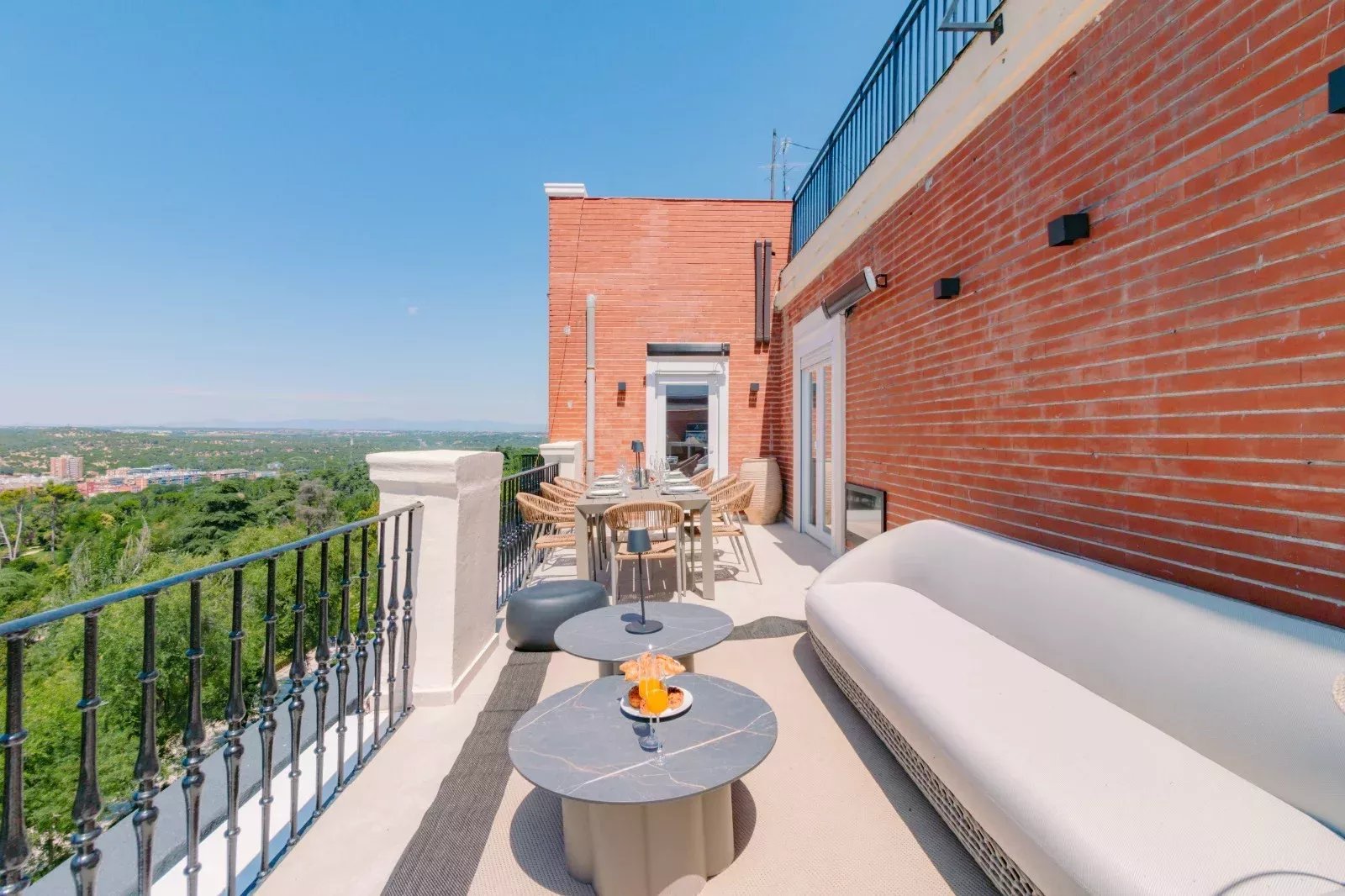 Le véritable joyau de cet appartement est sans aucun doute sa spectaculaire terrasse avec vue dégagée sur le parc — un espace extérieur privilégié pour se détendre, dîner en plein air ou simplement admirer le coucher du soleil sur Madrid.