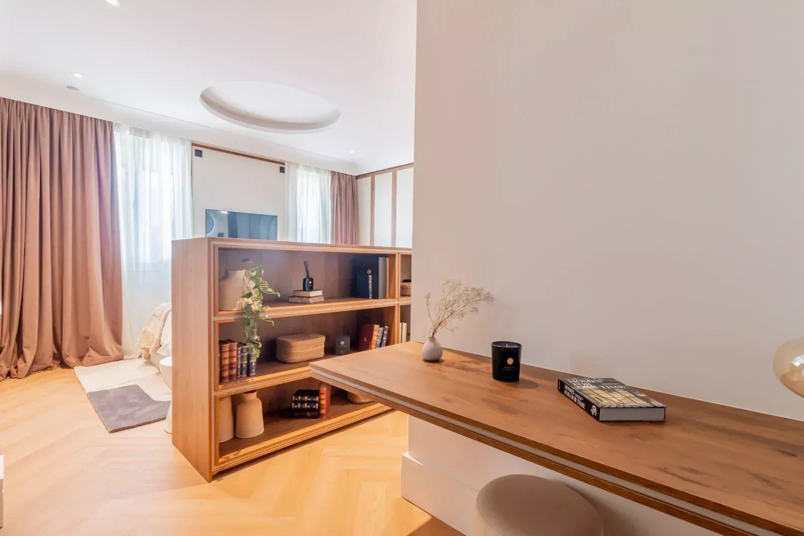 La partie jour s’ouvre sur un vaste salon-salle à manger baigné de lumière avec cuisine ouverte, idéal pour un mode de vie moderne et convivial. Chaque détail incarne l’alliance parfaite entre design et fonctionnalité.