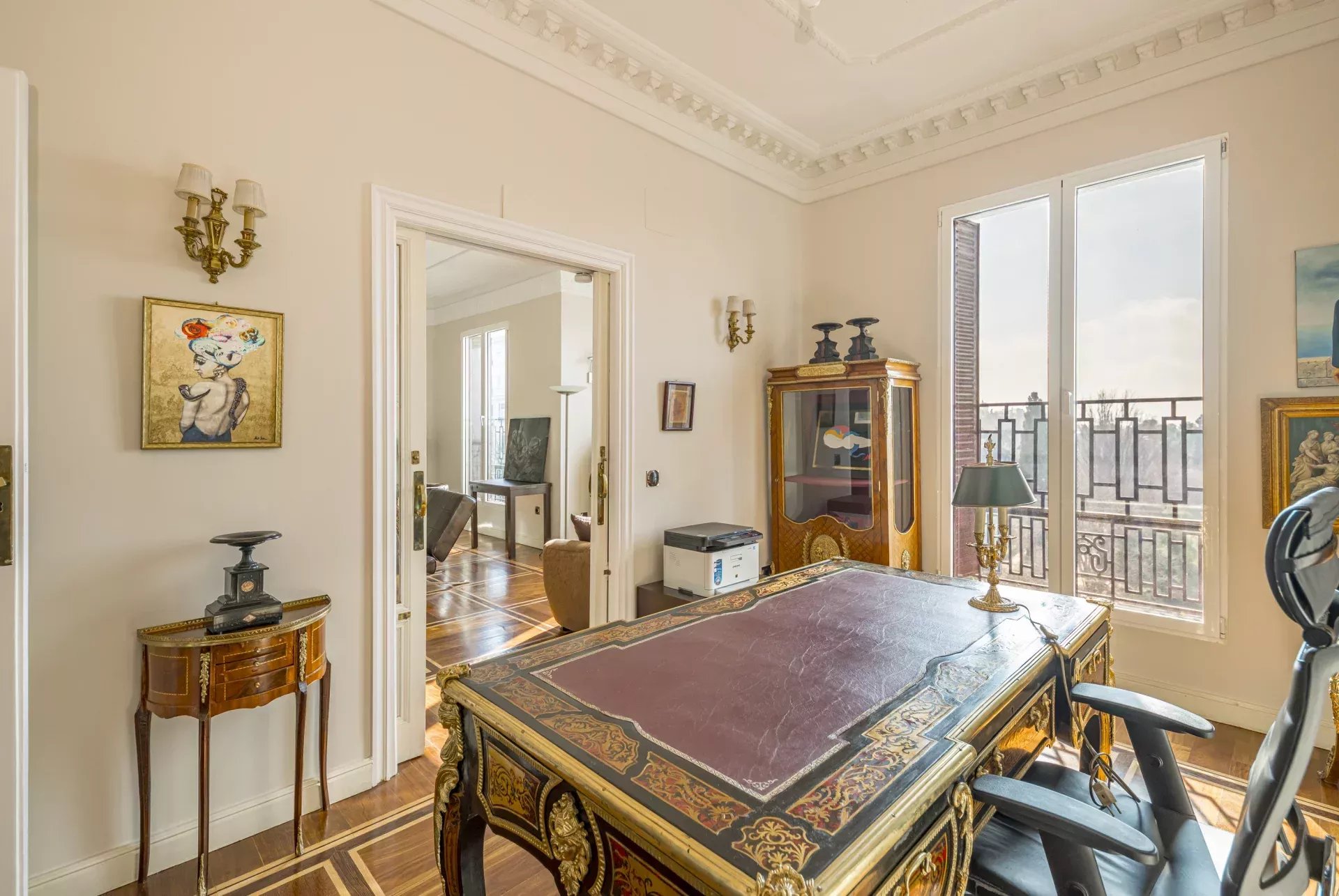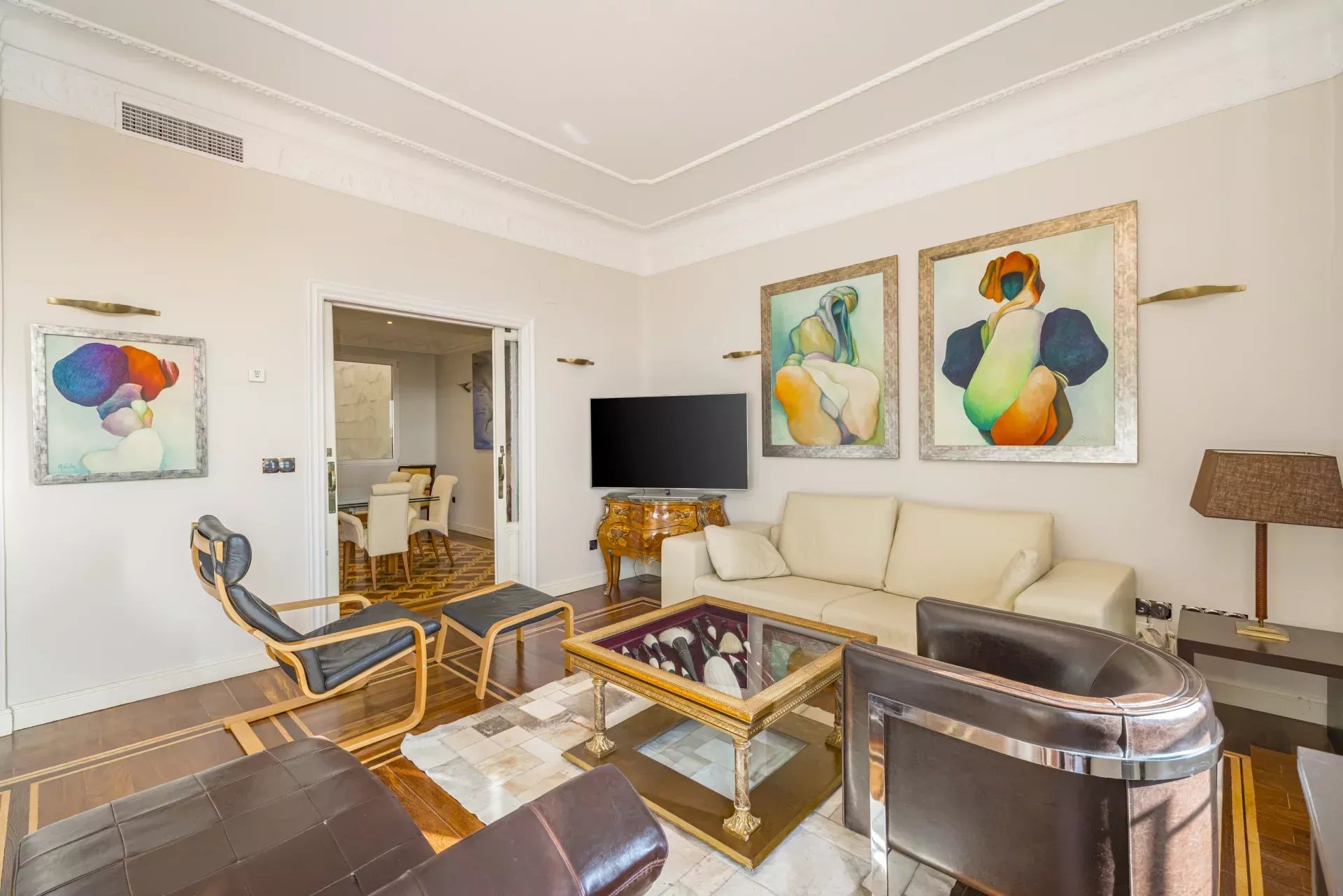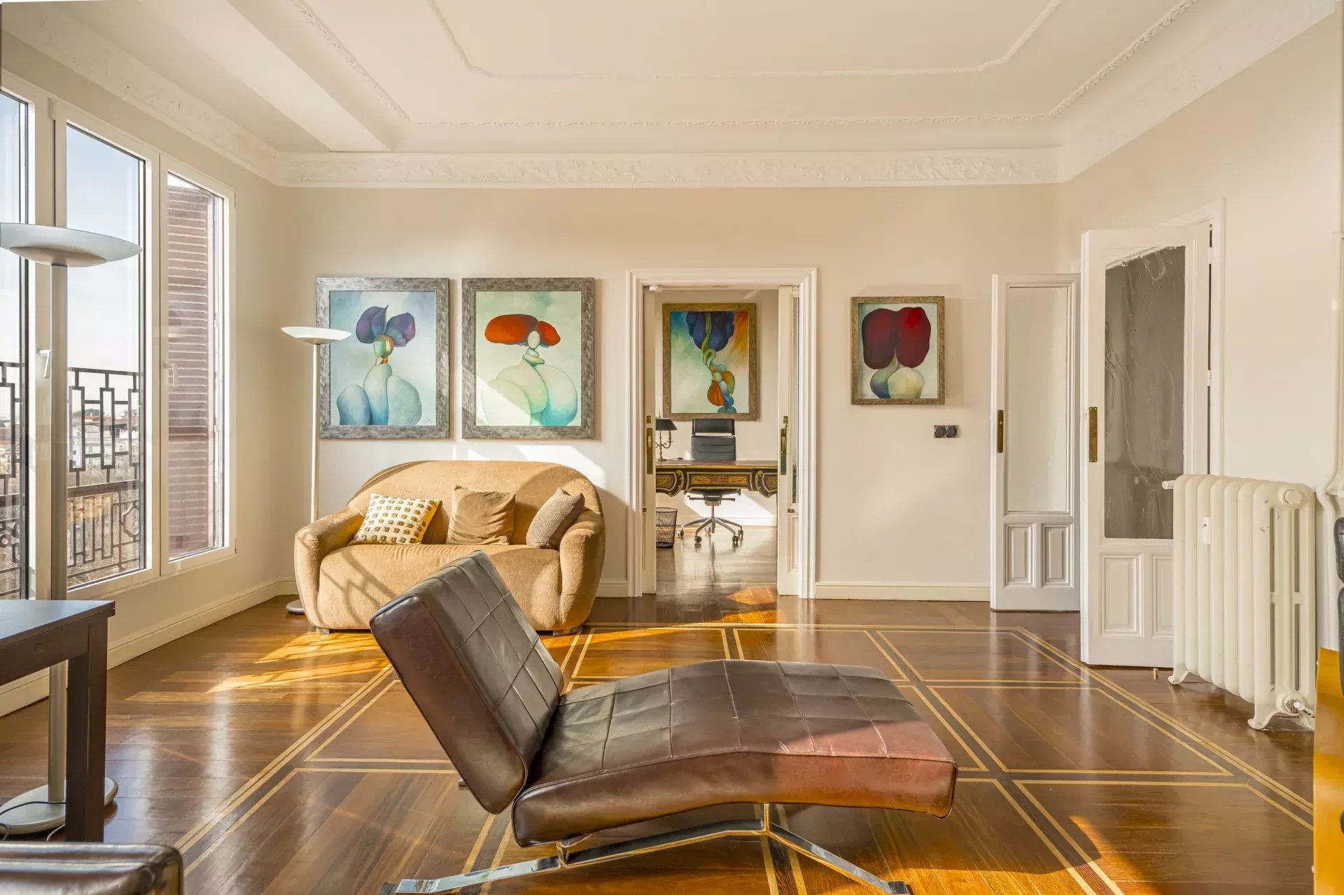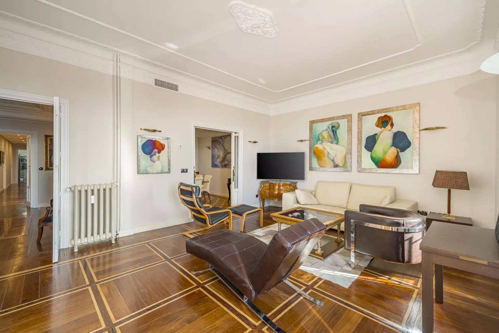 BARNES Madrid propose à la location cette propriété meublée d’exception de 220 m², située dans le quartier prisé de Jerónimos, au sein du district de Retiro.