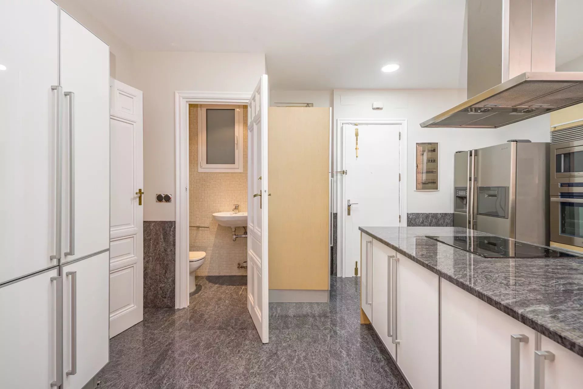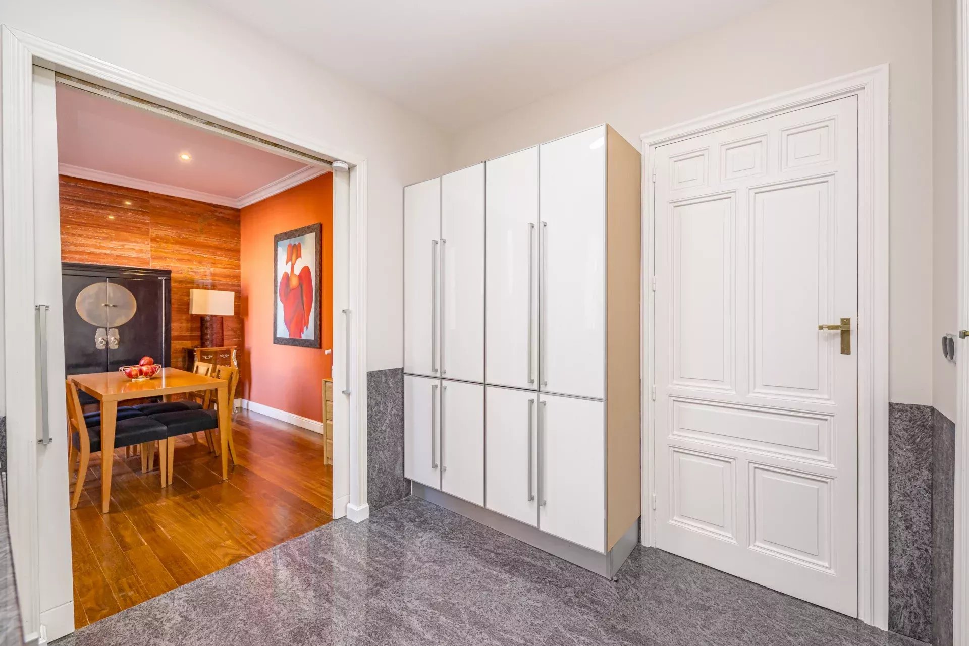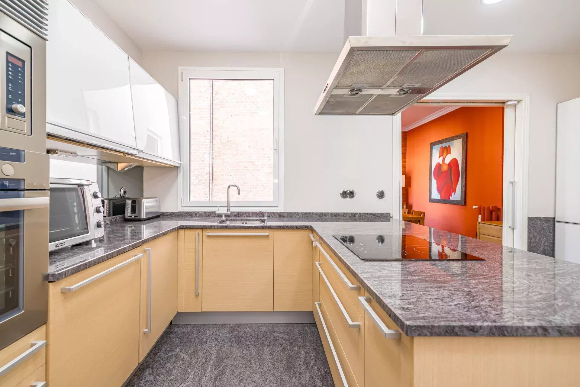 La cuisine moderne et fonctionnelle est équipée d’électroménagers de dernière génération. Des finitions haut de gamme, des sols en bois noble et de hauts plafonds complètent cette offre luxueuse.