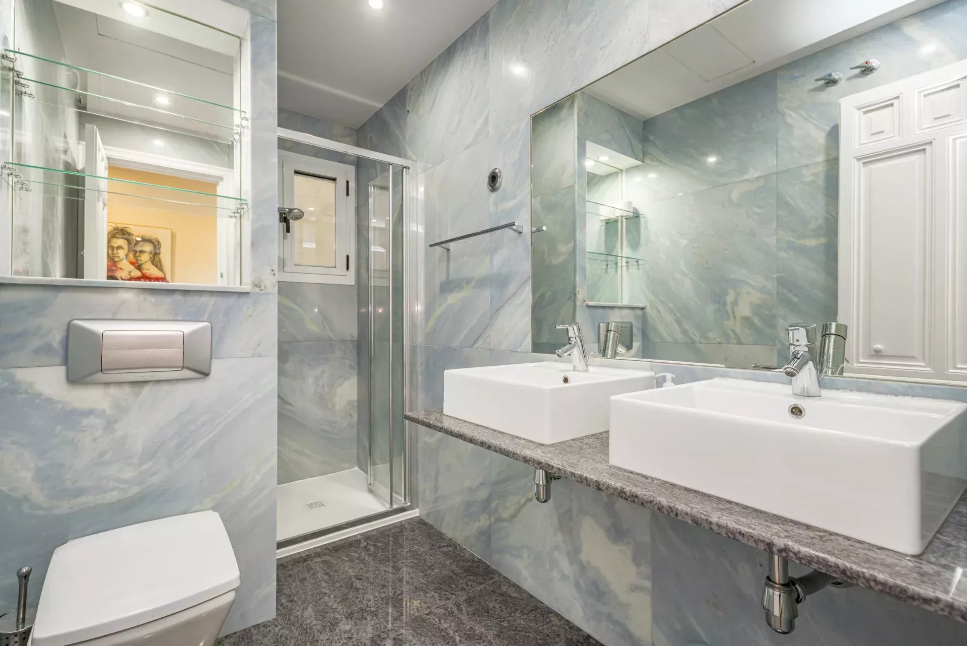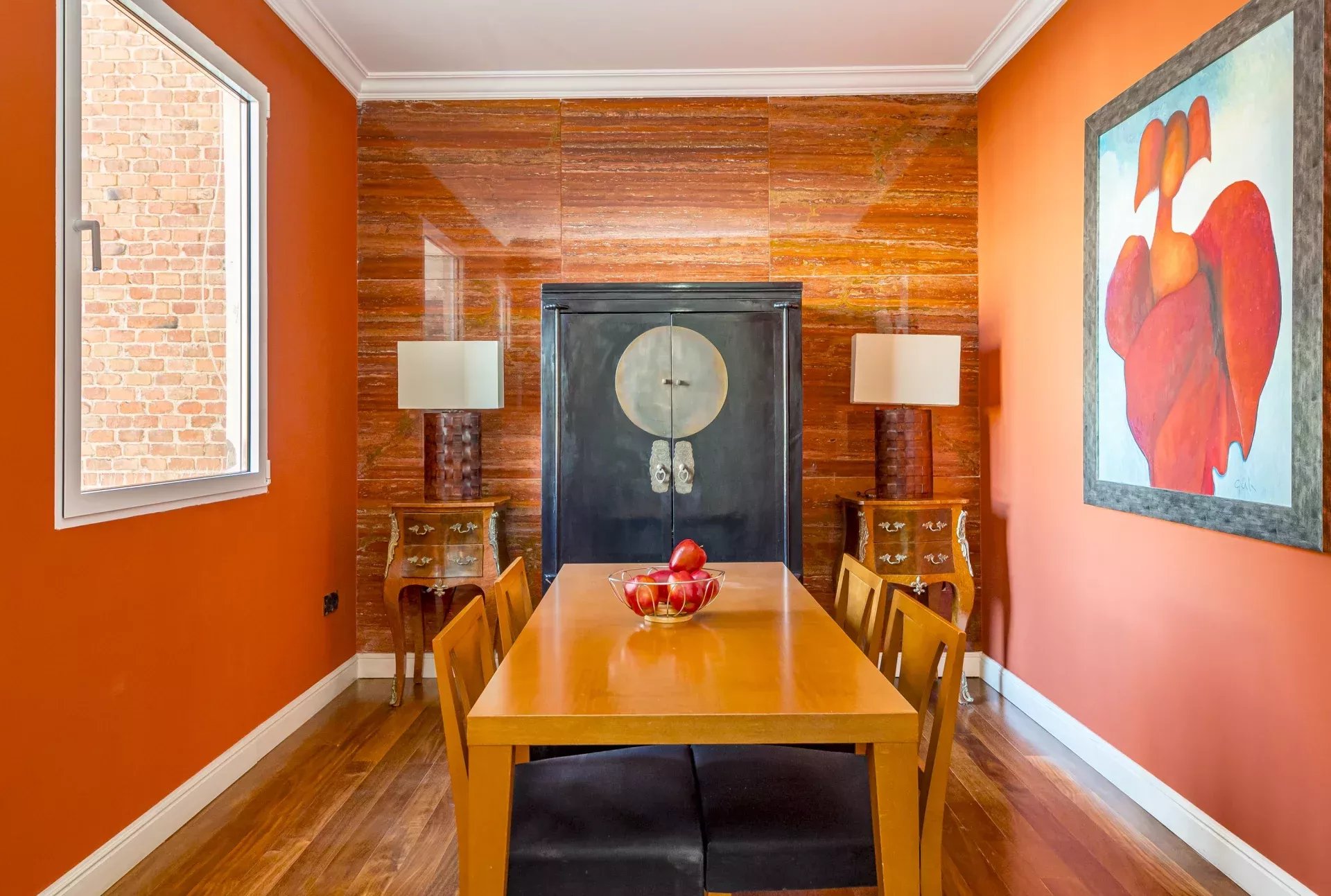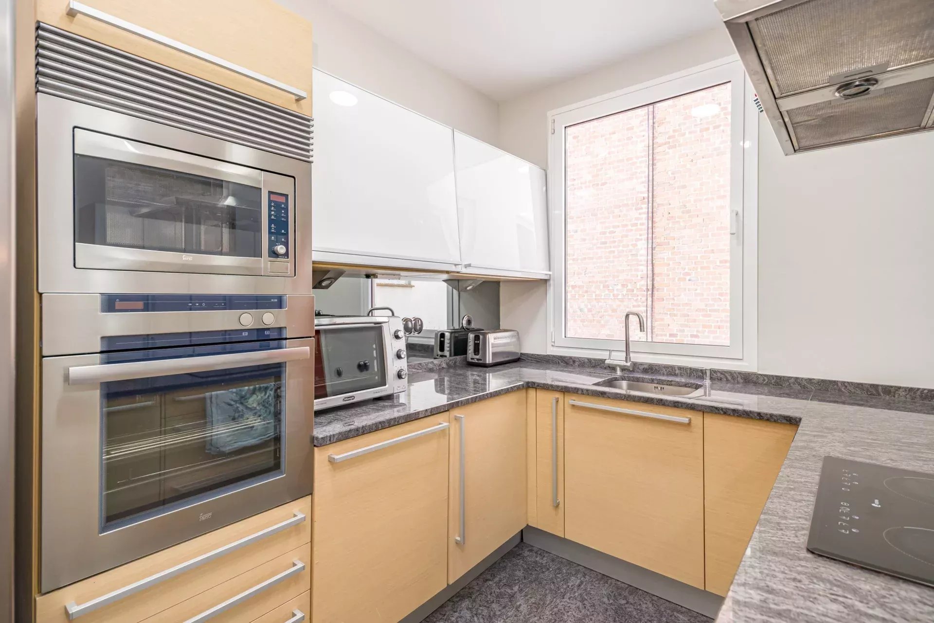 La cuisine moderne et fonctionnelle est équipée d’électroménagers de dernière génération. Des finitions haut de gamme, des sols en bois noble et de hauts plafonds complètent cette offre luxueuse.