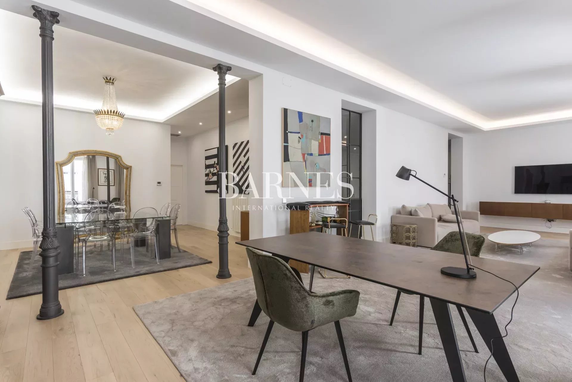 Barnes Madrid présente cet appartement de luxe exclusif de 220 mètres carrés, entièrement meublé avec un design d'intérieur sur mesure et des finitions haut de gamme. Situé dans un bâtiment représentatif de style classique, entièrement rénové, avec seulement deux voisins par étage, dans l'un des meilleurs et plus calmes quartiers de Salamanca.