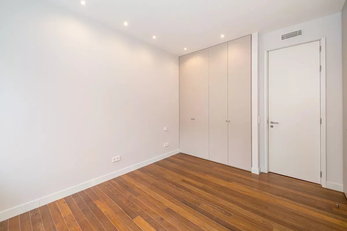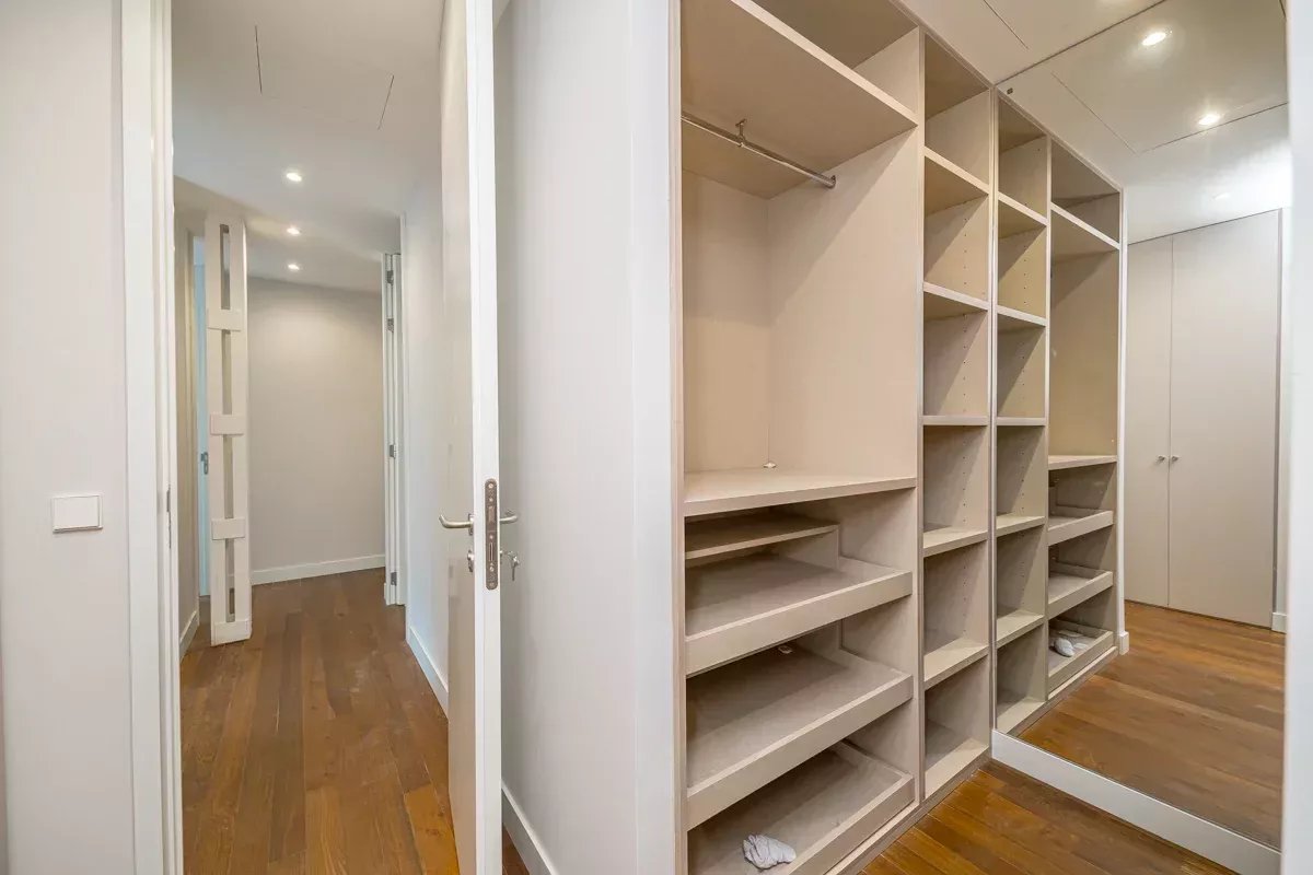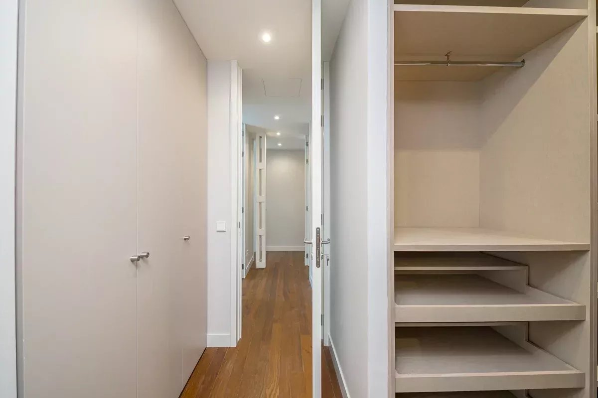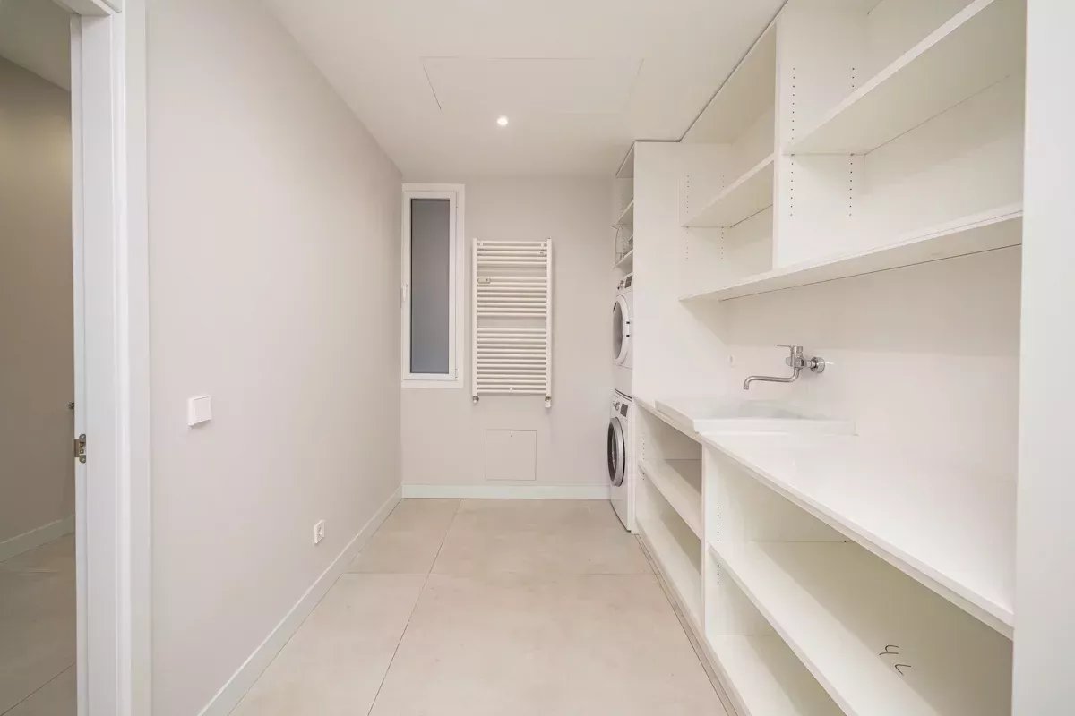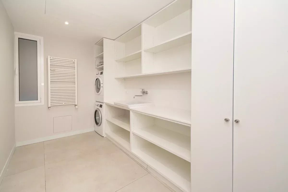 De plus, l'appartement dispose d'une zone de service indépendante, avec une chambre, une salle de bain complète et un espace de buanderie et de repassage, équipé d'une machine à laver et d'un sèche-linge.