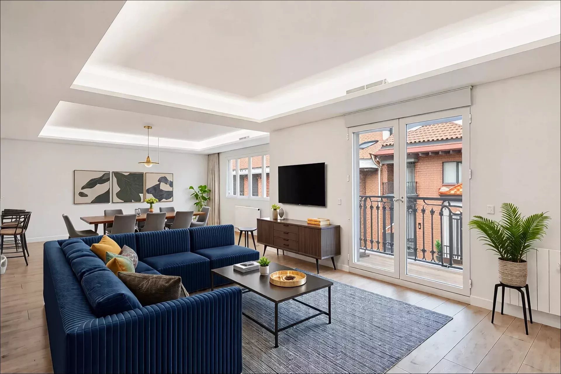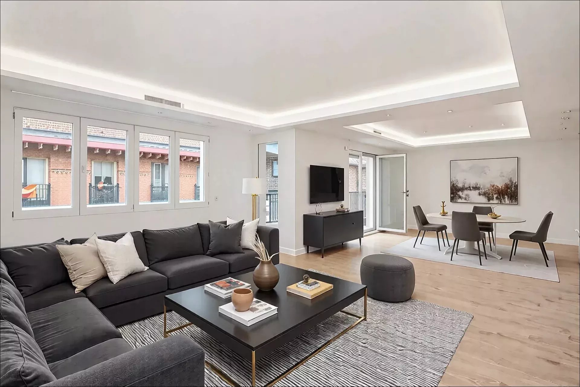 Cette propriété de luxe au design contemporain et matériaux haut de gamme offre un style de vie sophistiqué à deux pas du parc du Retiro.