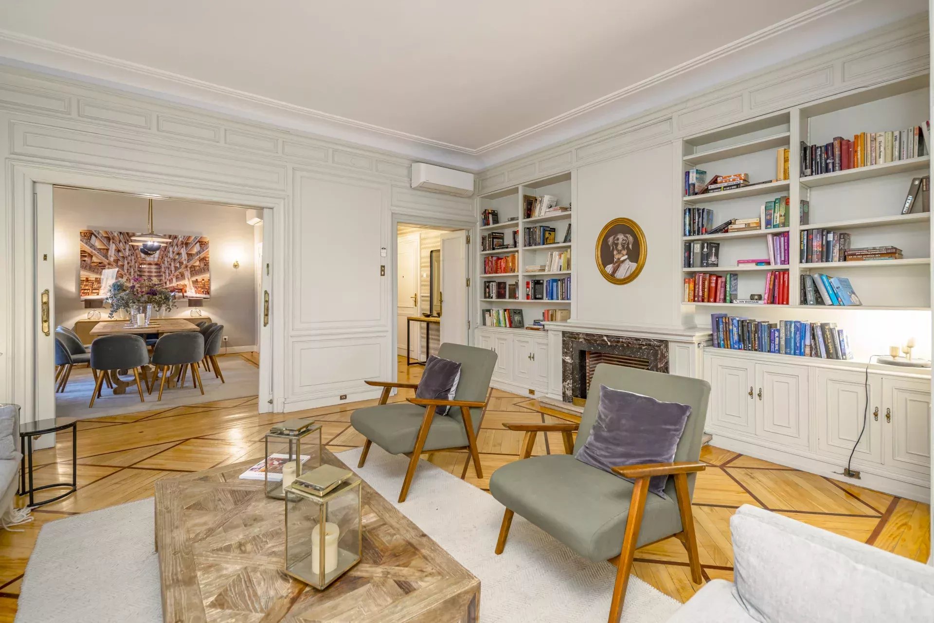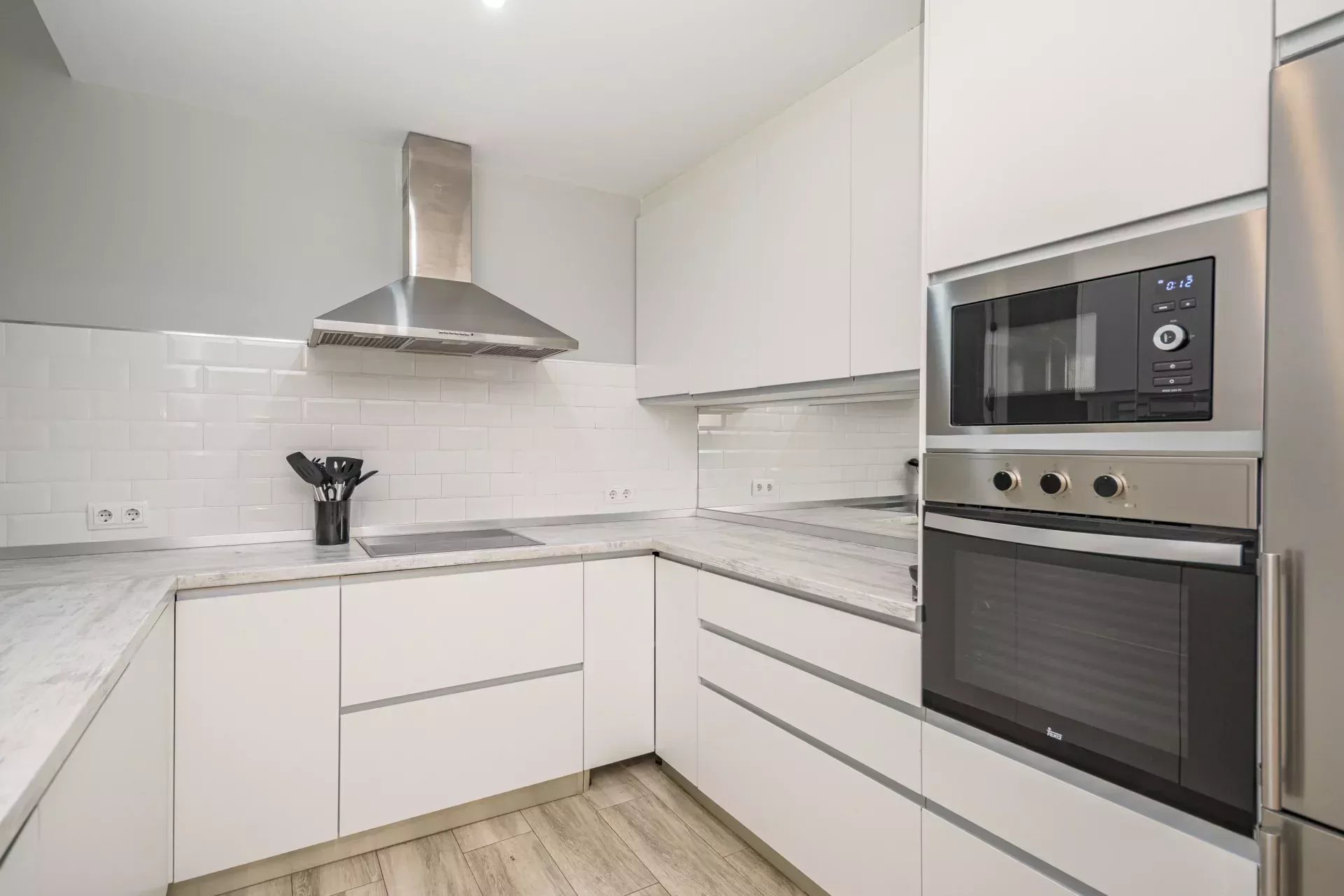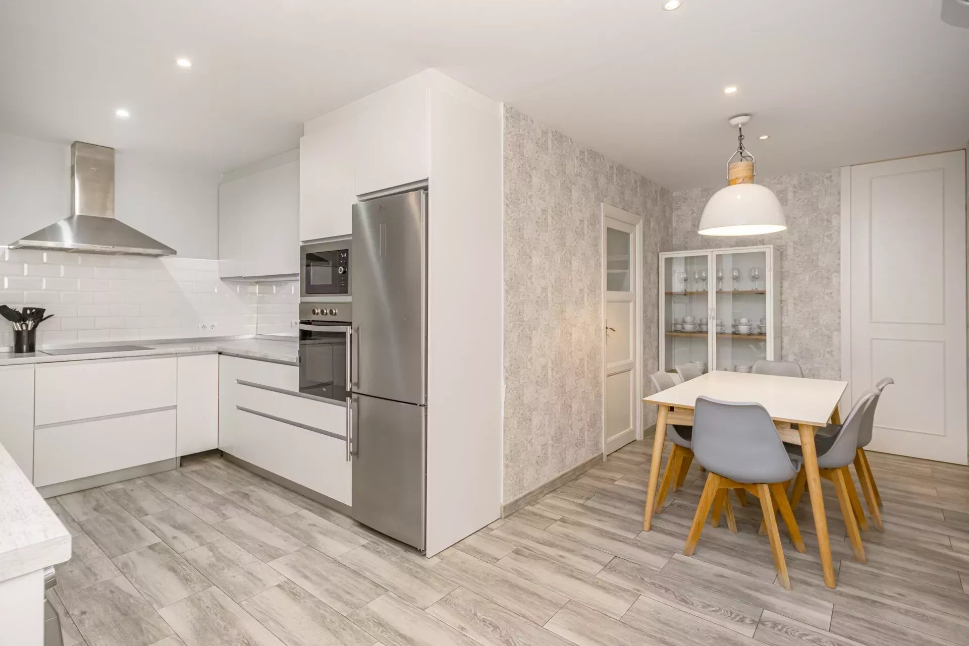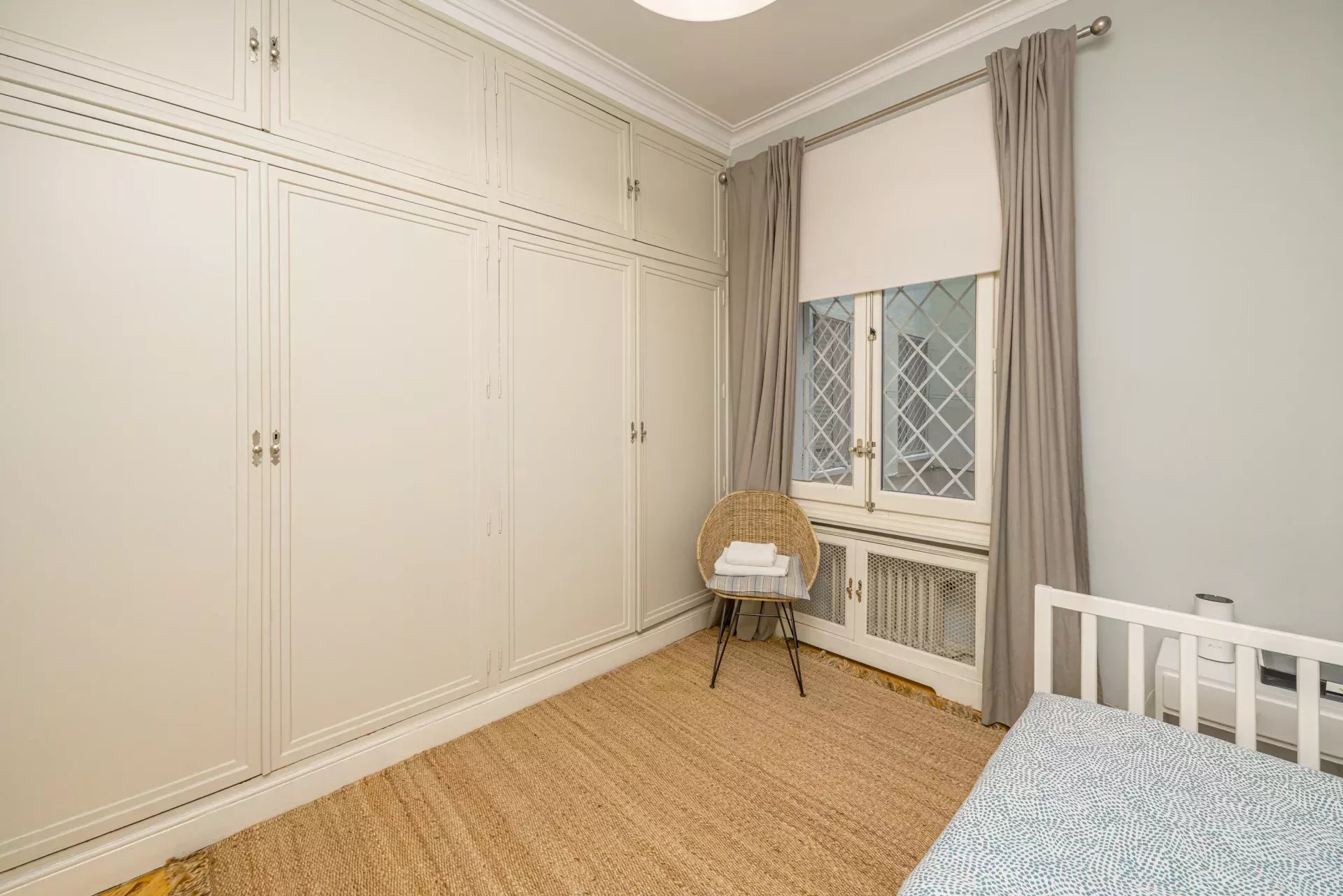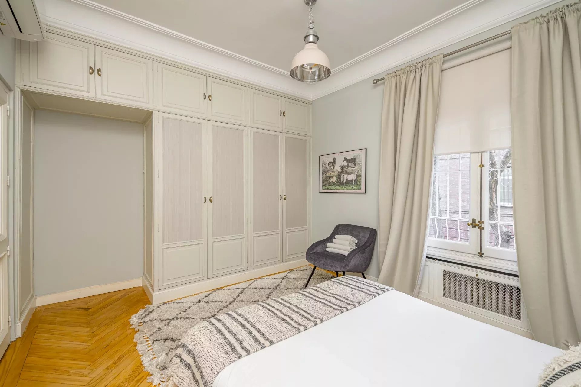 Les sols en pin mélis apportent chaleur et élégance à l’ensemble du logement, qui bénéficie également de la climatisation, du chauffage central et de l’eau chaude collective pour un confort optimal tout au long de l’année.