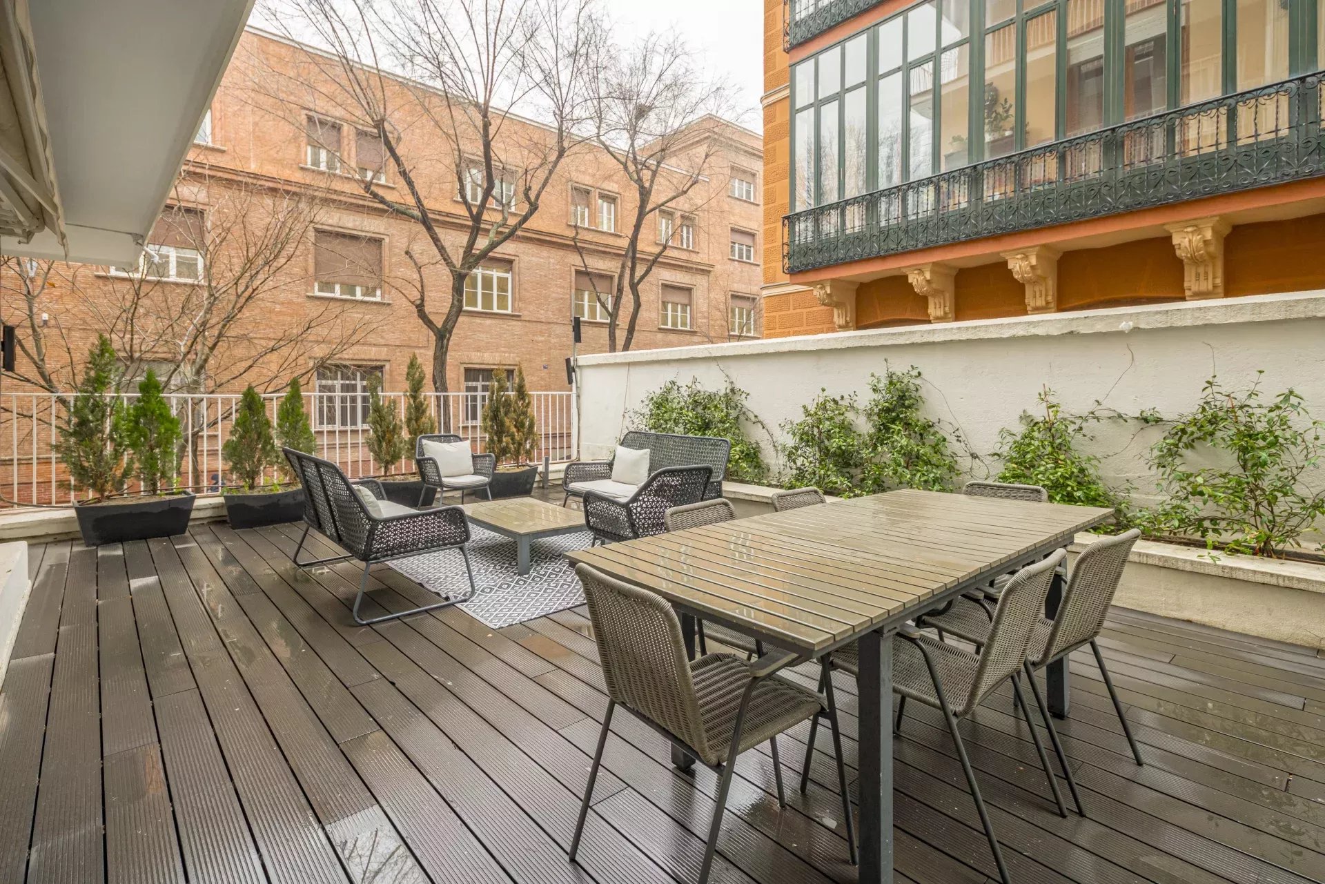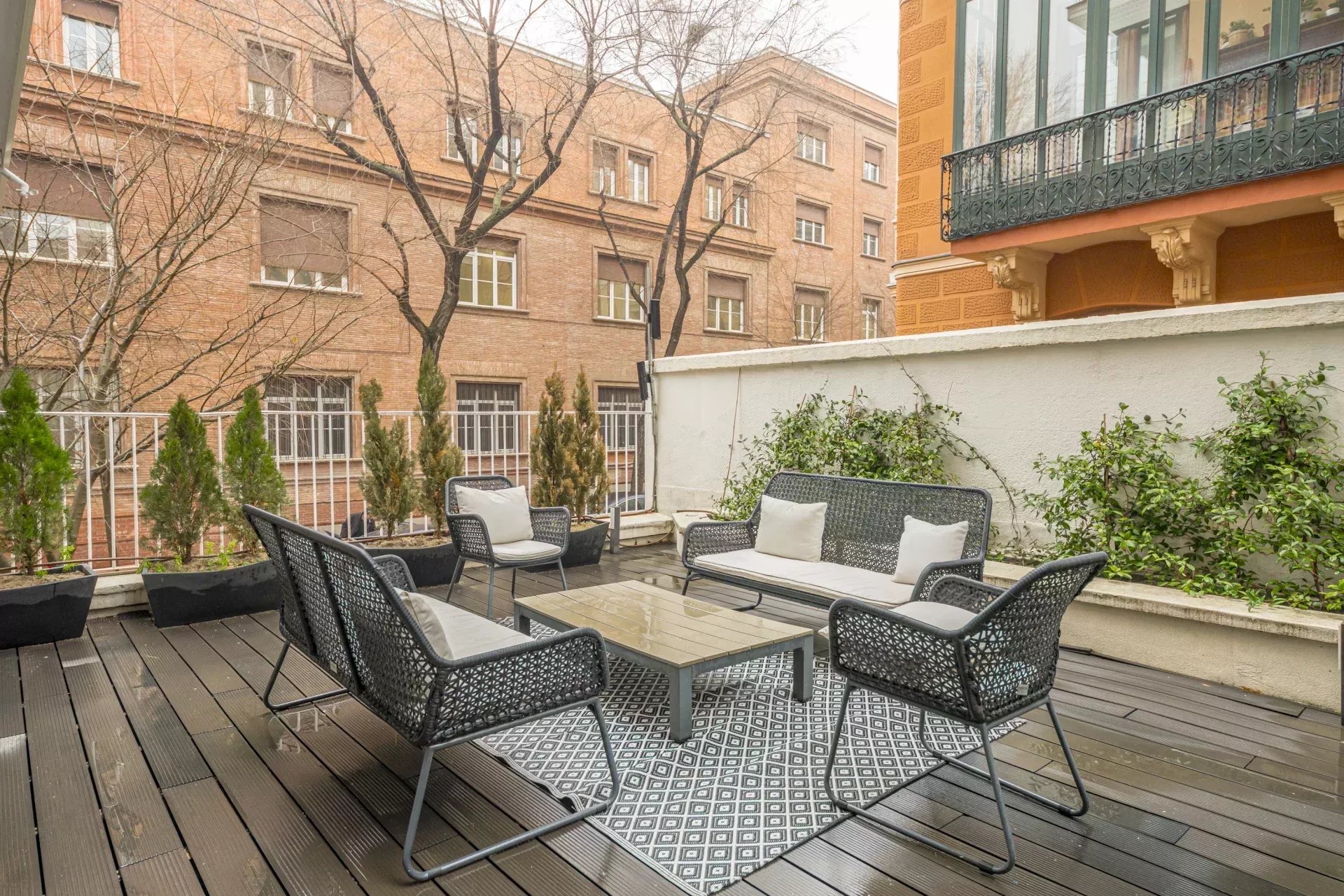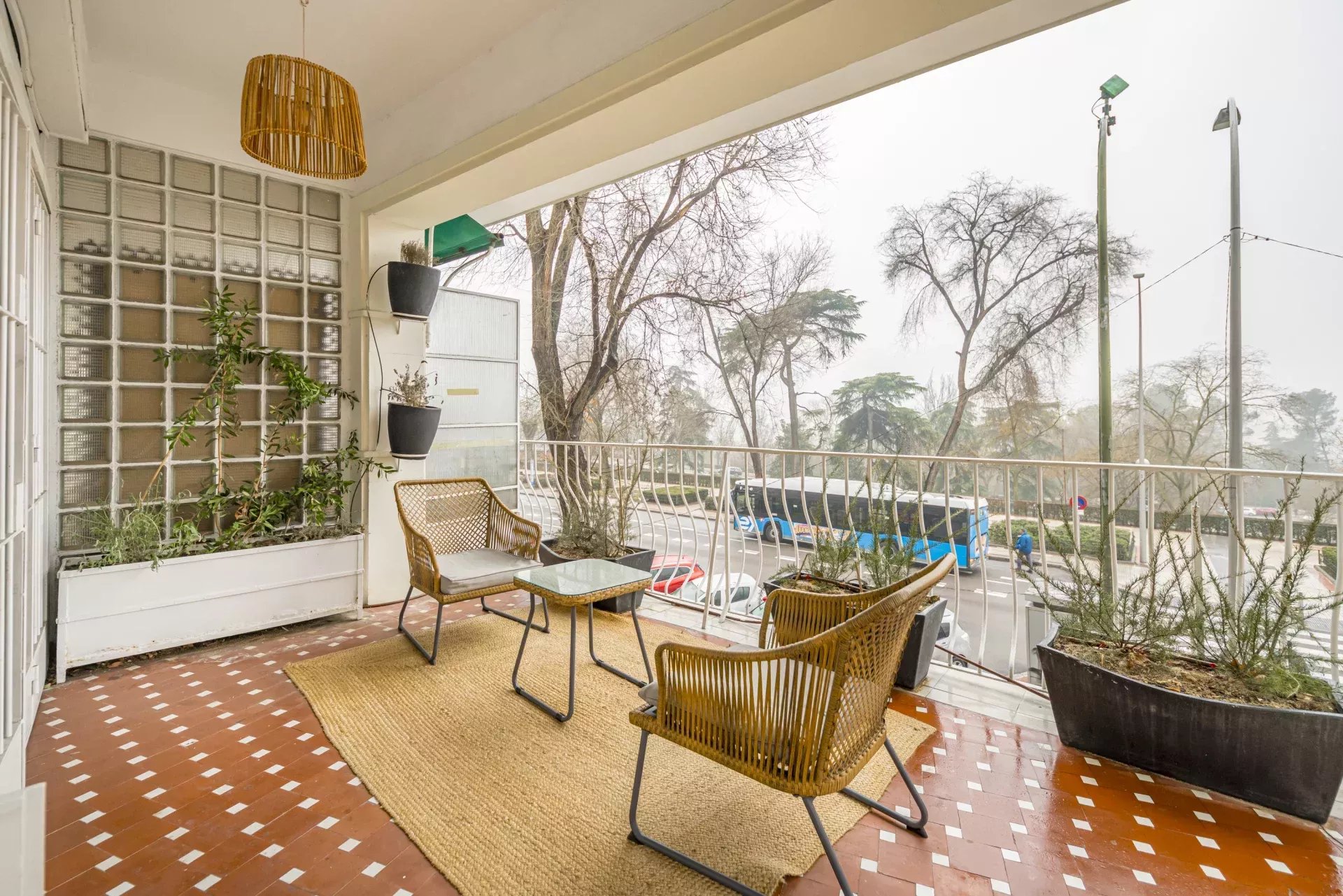 Installé dans un immeuble de standing avec service de conciergerie, il se distingue par deux terrasses privées : l'une orientée vers l'emblématique Parque del Oeste, et l'autre, de grande taille, accessible directement depuis le salon principal, offrant un cadre lumineux, paisible et privilégié au quotidien.