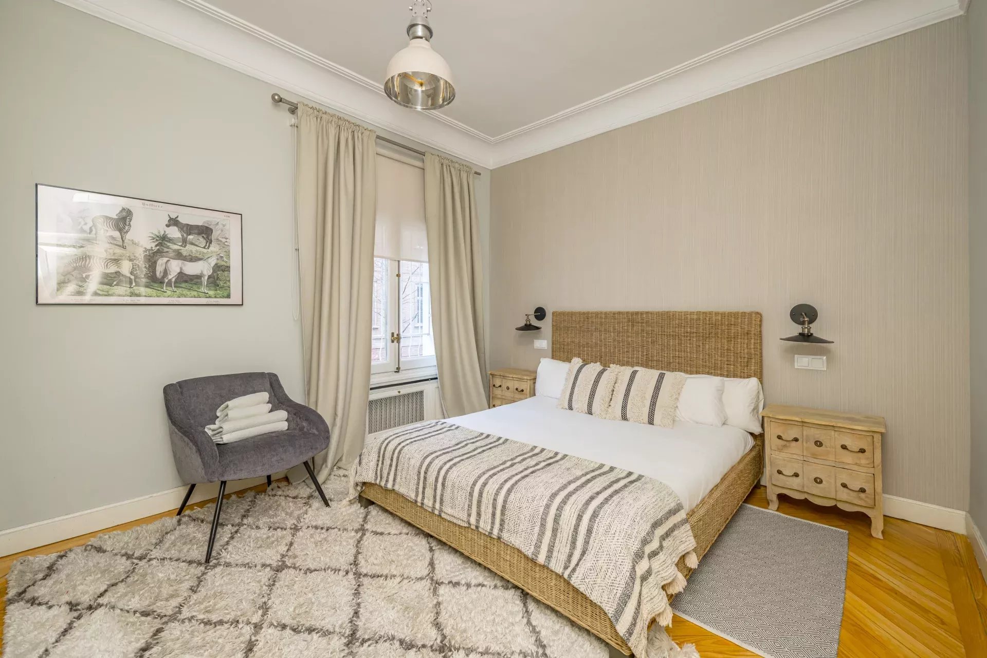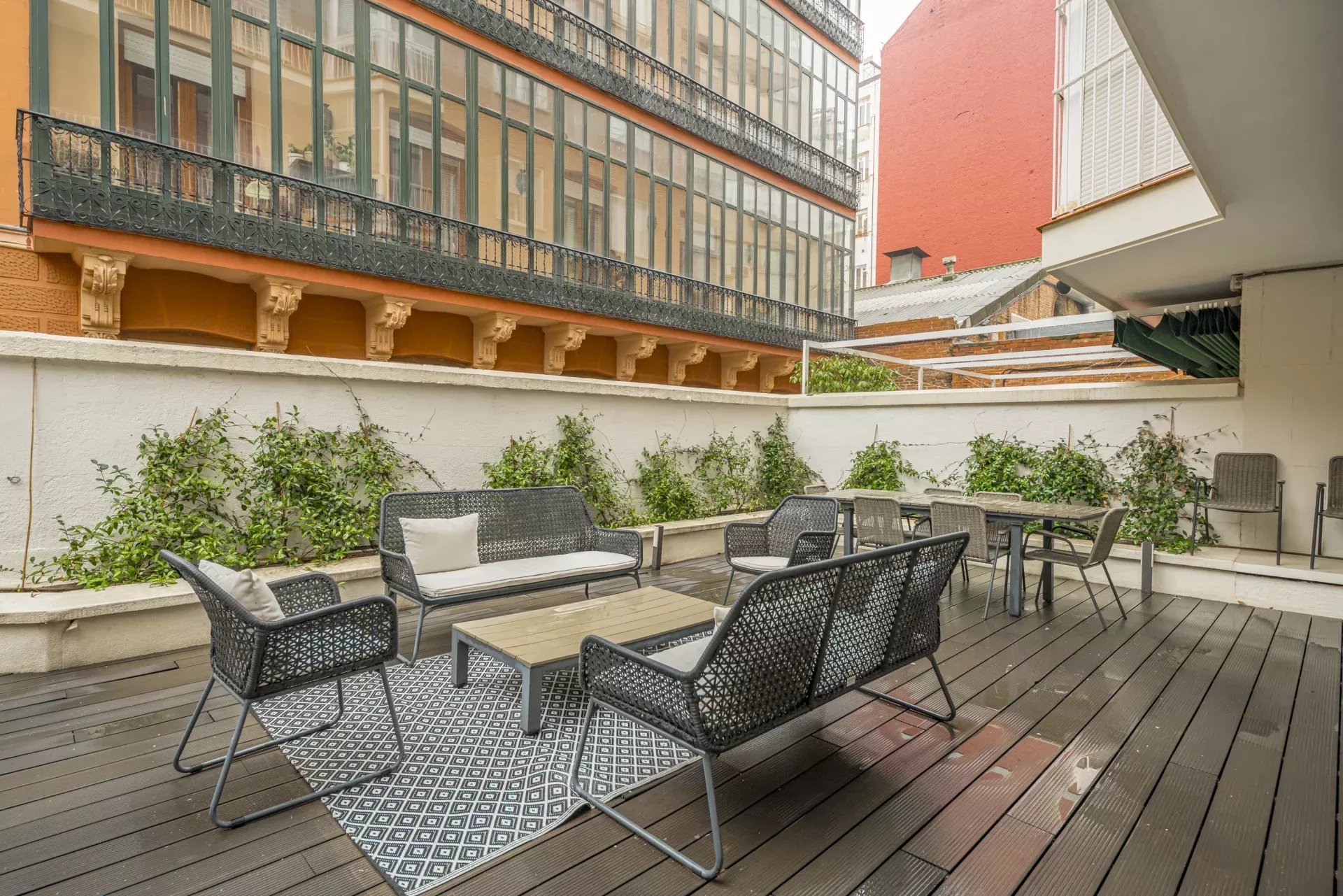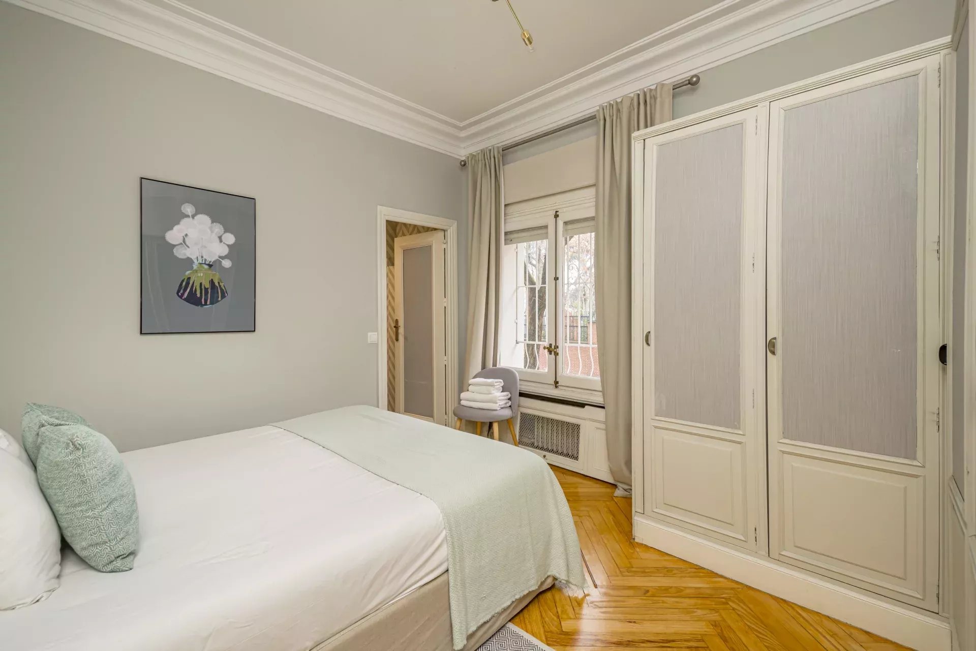 Installé dans un immeuble de standing avec service de conciergerie, il se distingue par deux terrasses privées : l'une orientée vers l'emblématique Parque del Oeste, et l'autre, de grande taille, accessible directement depuis le salon principal, offrant un cadre lumineux, paisible et privilégié au quotidien.