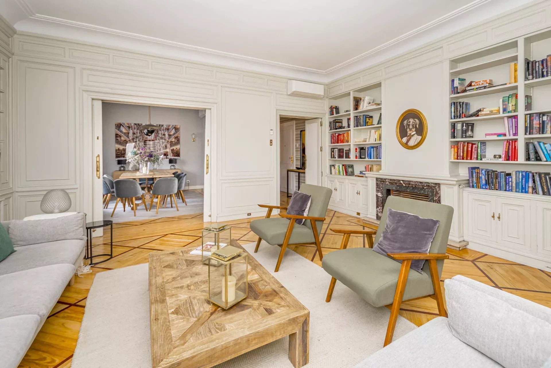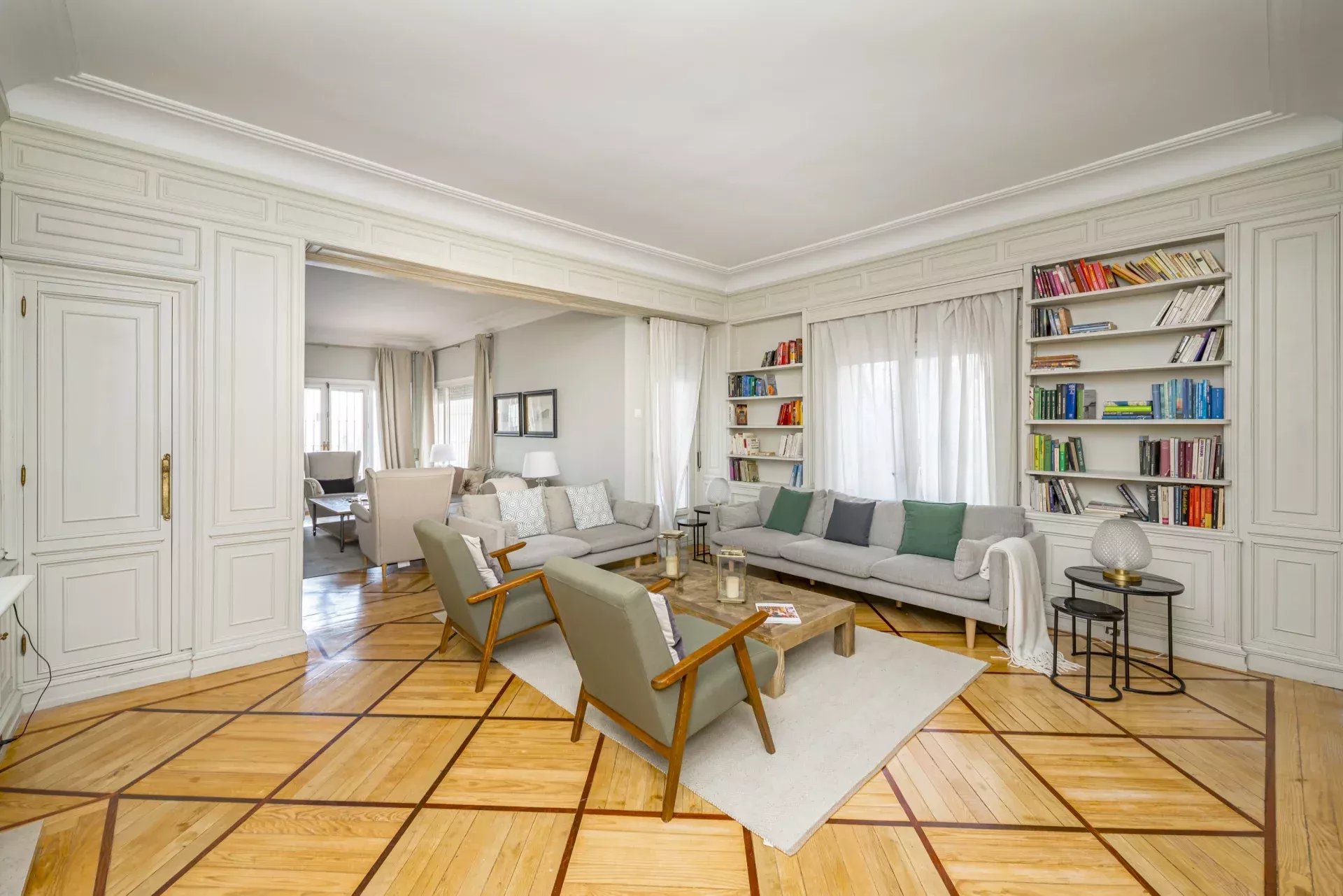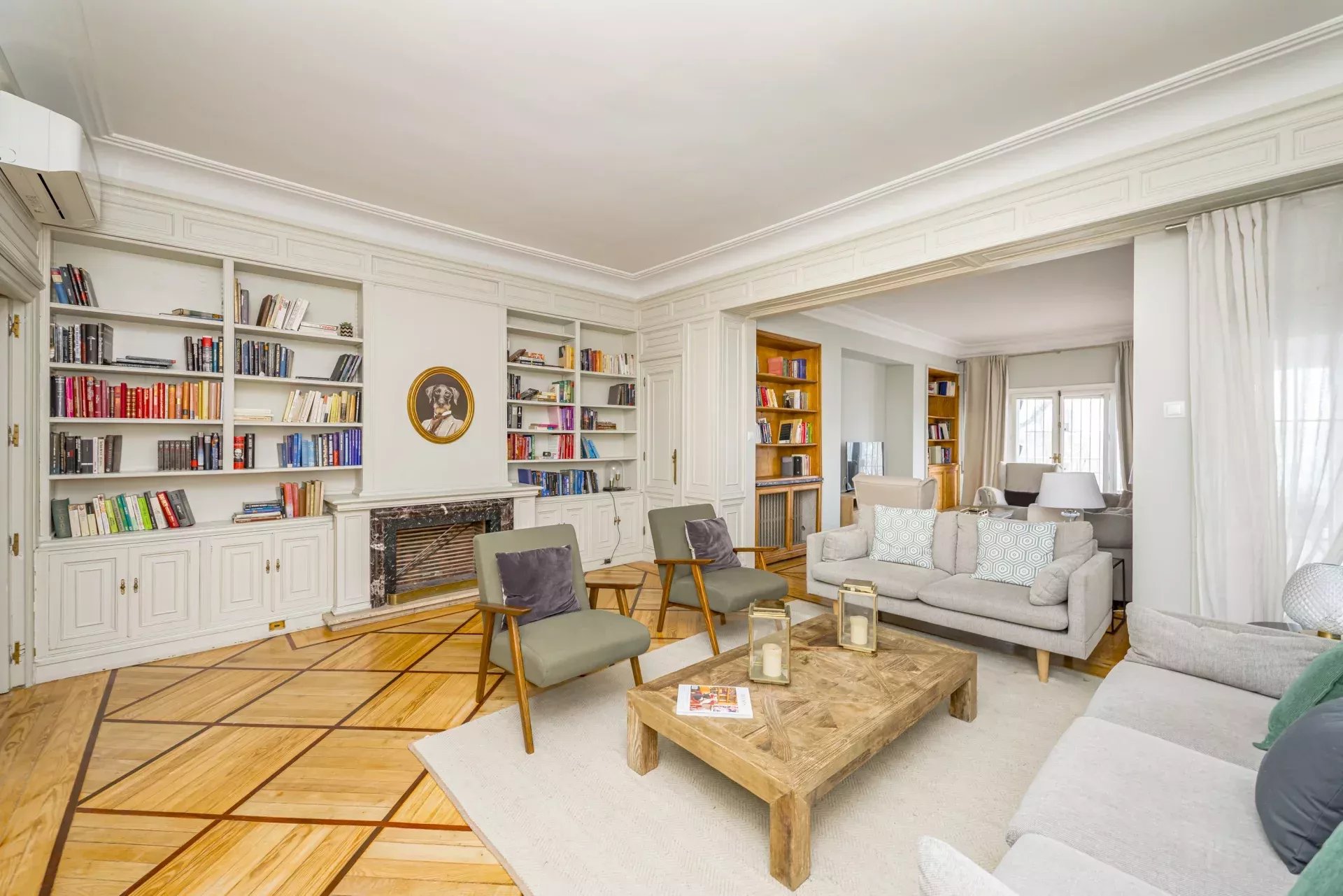 Il dispose de deux salons distincts, d'une salle à manger principale, de cinq chambres — dont deux en suite — ainsi que d’une pièce supplémentaire, parfaite pour le personnel ou comme buanderie/repassage. La cuisine, spacieuse et lumineuse, est entièrement équipée avec des appareils électroménagers haut de gamme.