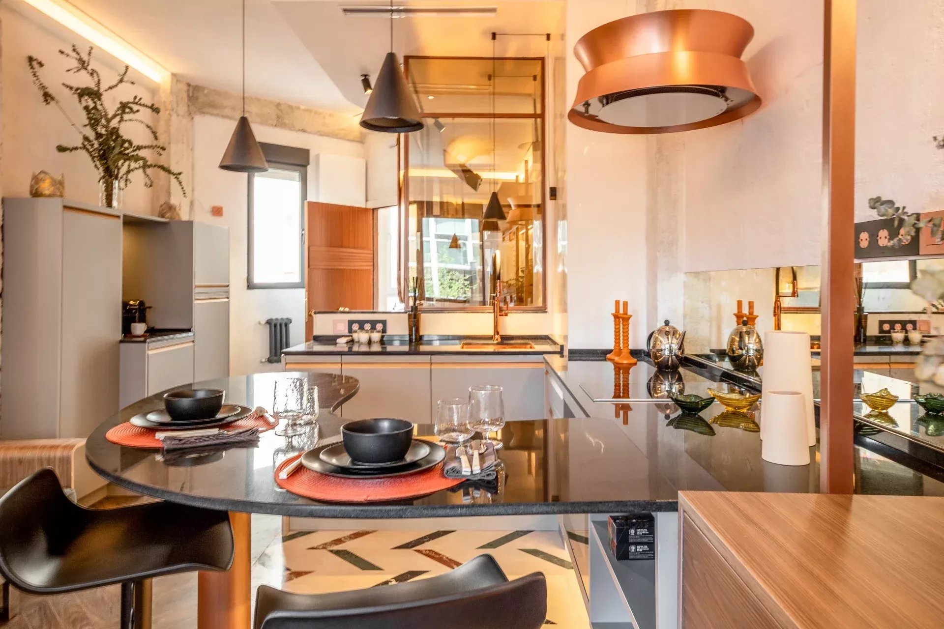 Chaque détail de la résidence a été méticuleusement conçu par un prestigieux cabinet d'architecture et de design d'intérieur. Les plafonds, de plus de trois mètres de hauteur, offrent une sensation de grandeur et d'élégance. La cuisine est équipée d'appareils électroménagers de dernière génération des marques MIELE et FALMEC. La climatisation par conduits comprend une pompe à chaleur, complétée par le système de chauffage central de l'immeuble.