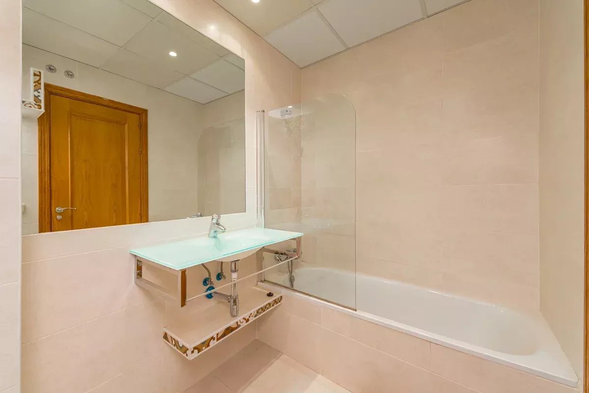 Ce bien de luxe dispose de deux balcons extérieurs et comprend quatre chambres, dont une grande suite principale avec de larges fenêtres offrant une luminosité exceptionnelle et une sensation d’espace. Les trois autres chambres partagent deux salles de bains complètes.