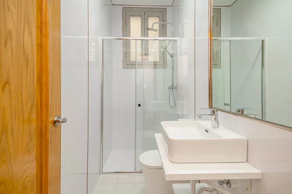 La cuisine indépendante, équipée d’électroménagers haut de gamme, est complétée par une pratique zone de lavage extérieure. Une place de parking avec accès direct et exclusif est également incluse — un atout très recherché dans ce quartier.