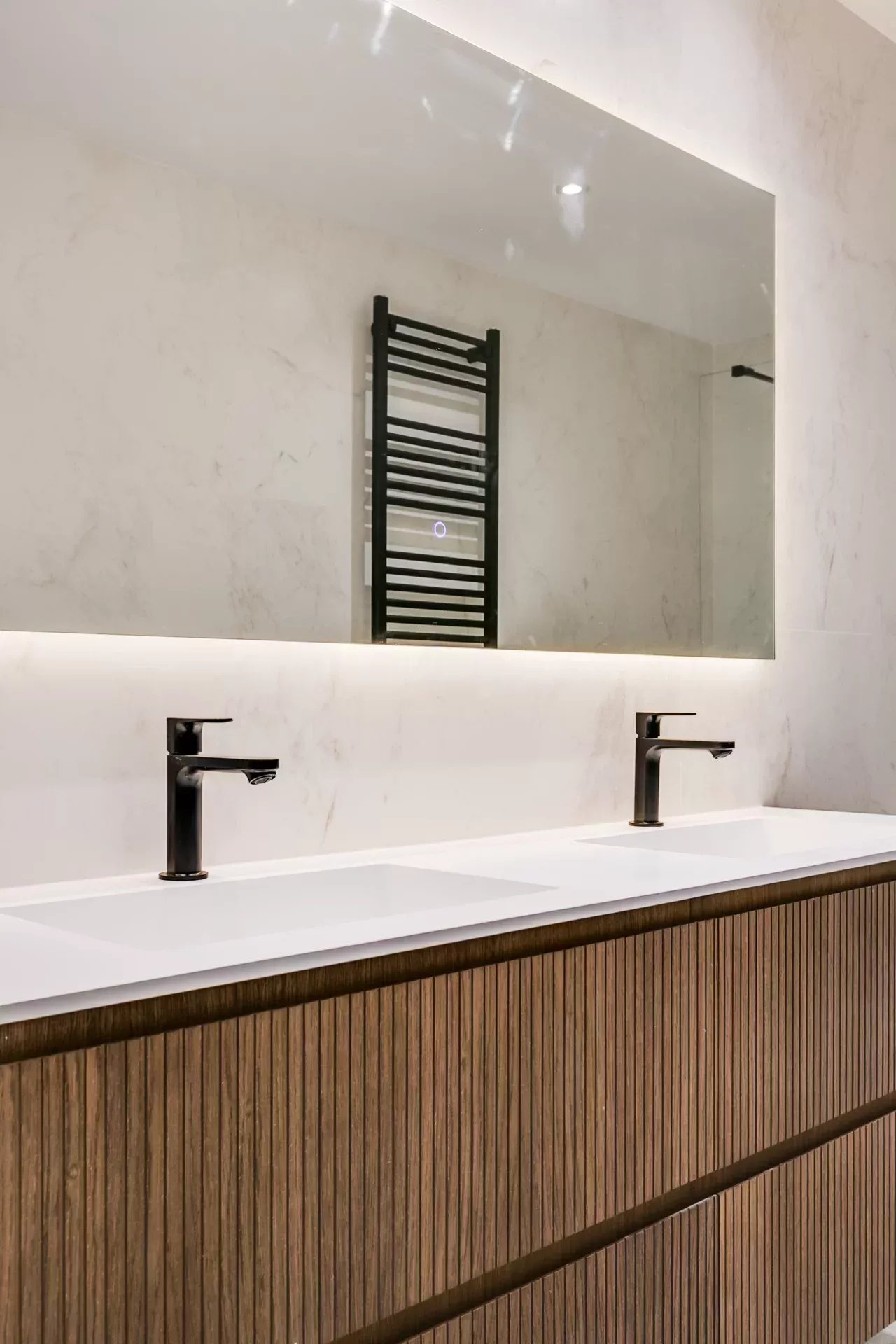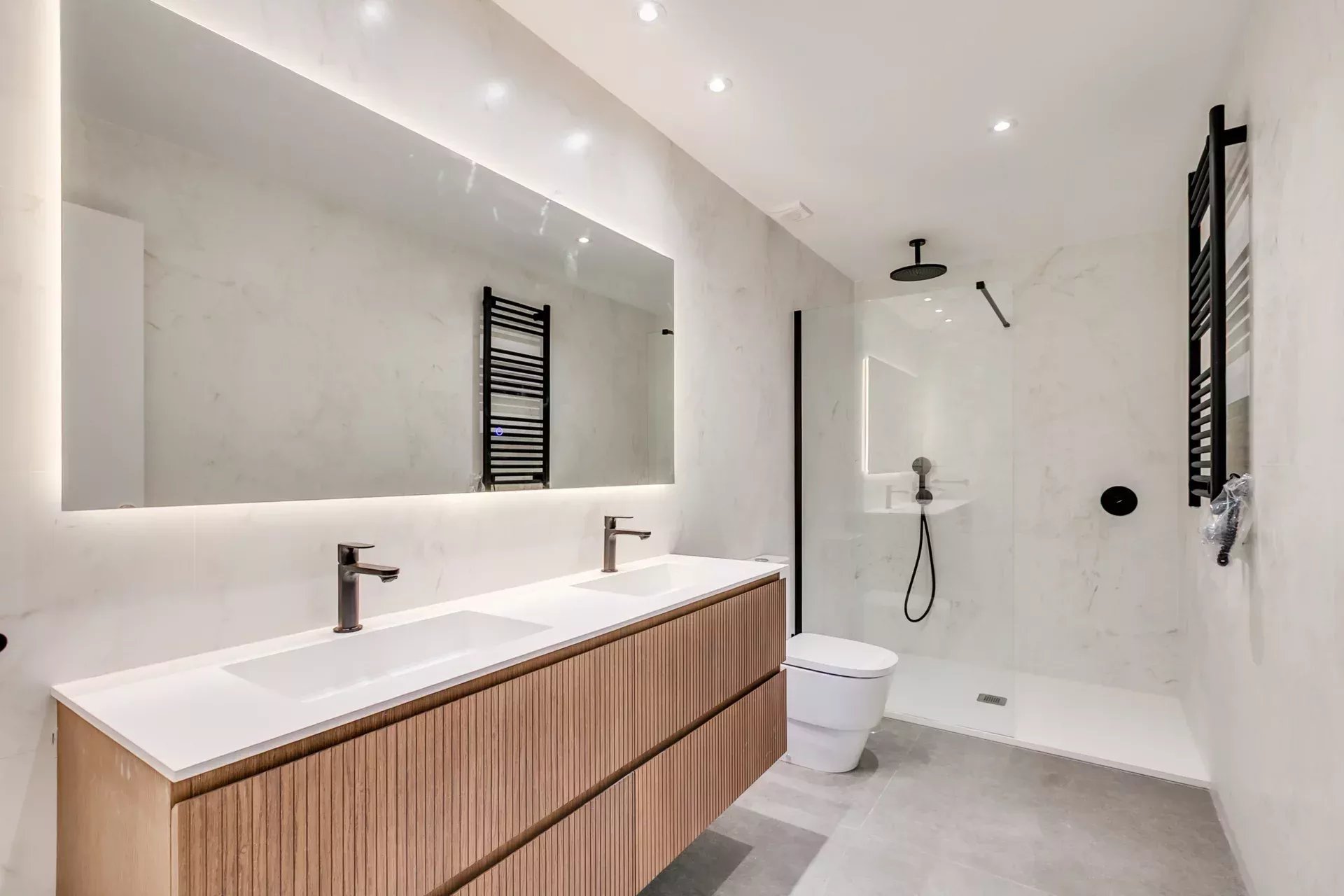 Une suite parentale généreuse avec de nombreux placards, de grandes fenêtres et une salle de bains avec double vasque, douche et finitions haut de gamme.