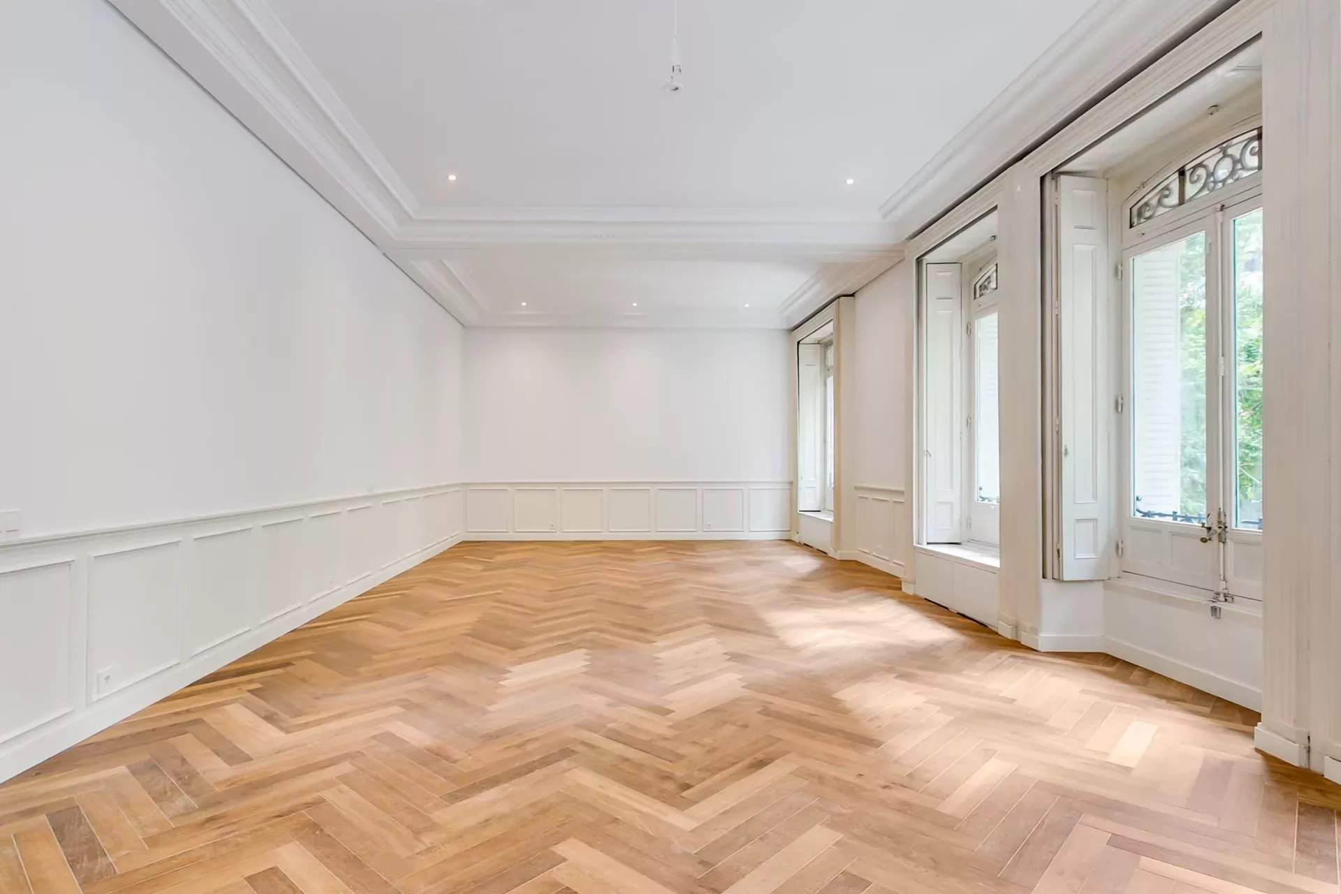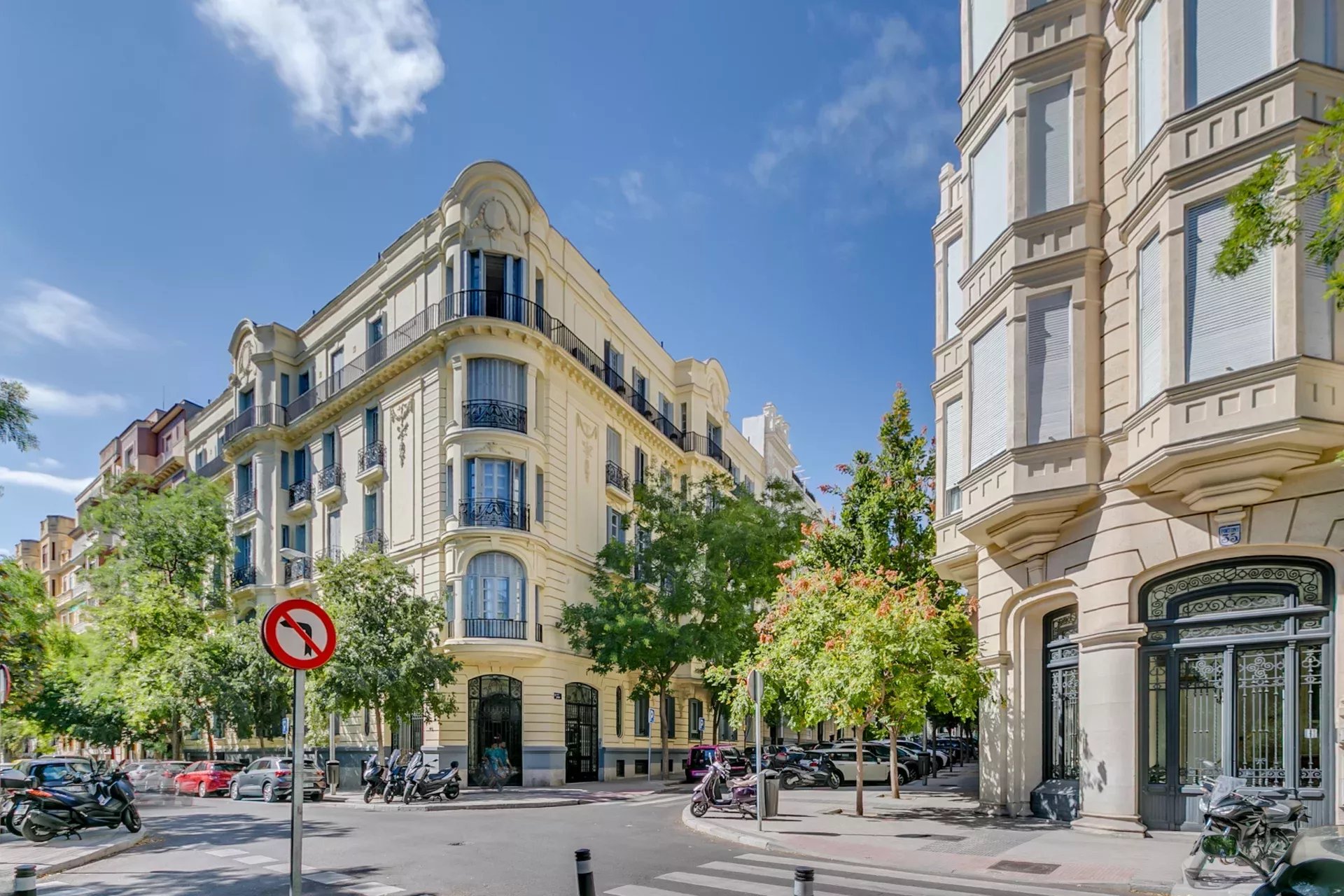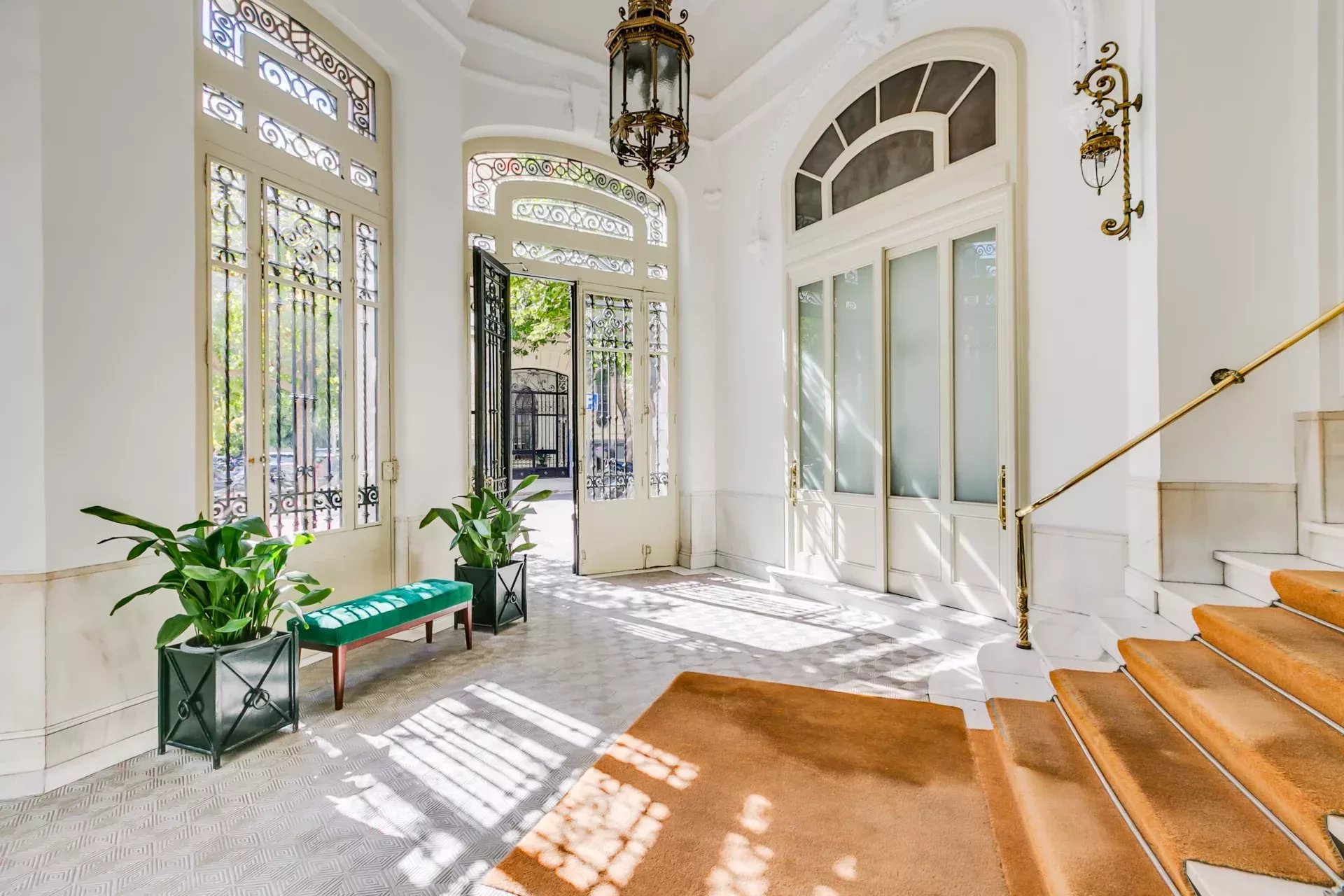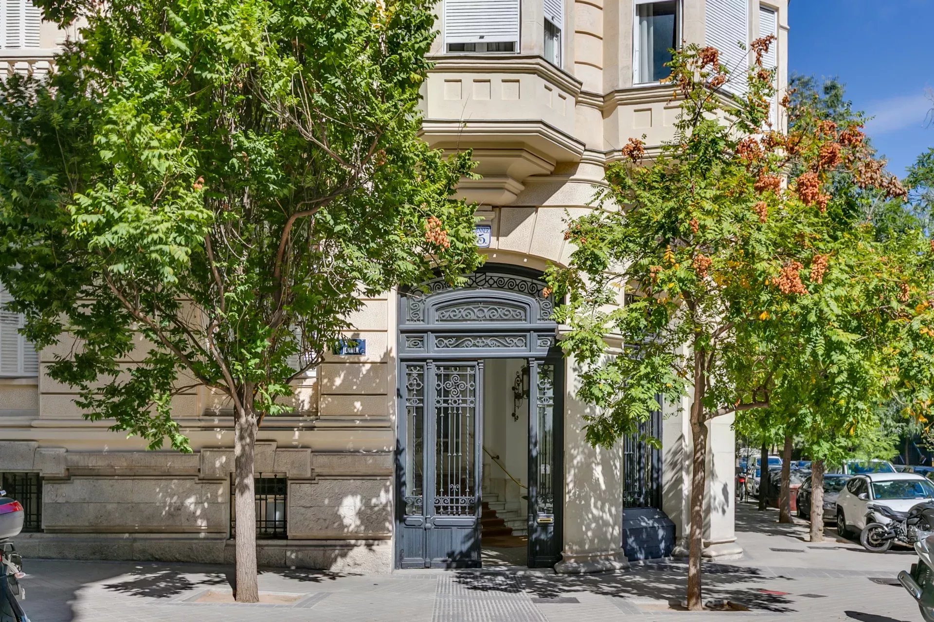 BARNES Madrid présente cette résidence exceptionnelle à louer de 319 m² construits et 280 m² habitables, située à l’étage noble d’un immeuble représentatif du milieu du XXe siècle, dans l’une des rues les plus emblématiques d’Almagro. L’immeuble, avec seulement quatre étages et huit voisins, dispose d’une entrée majestueuse, d’un ascenseur et d’un concierge résident, garantissant intimité et exclusivité.