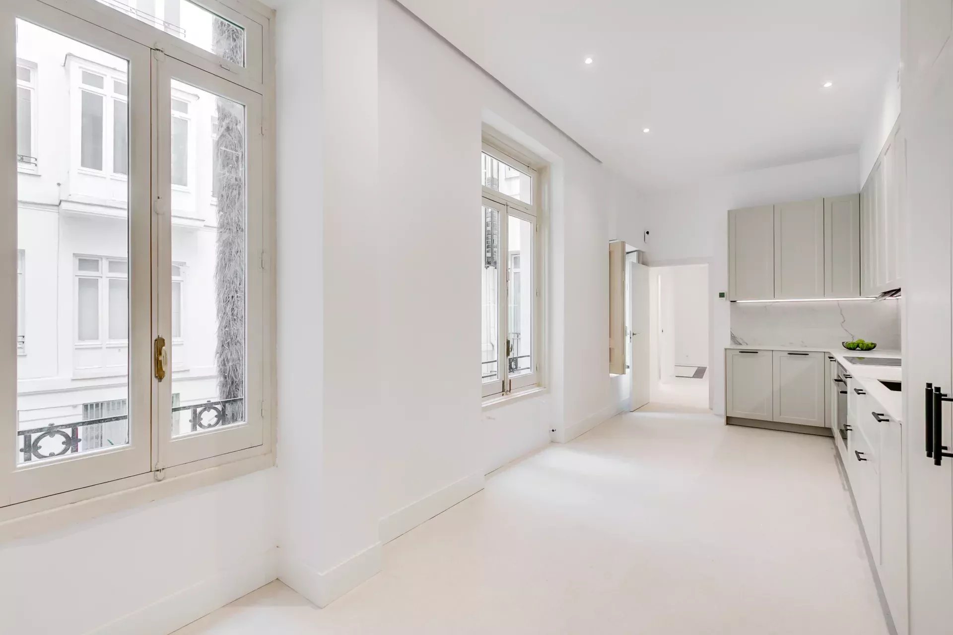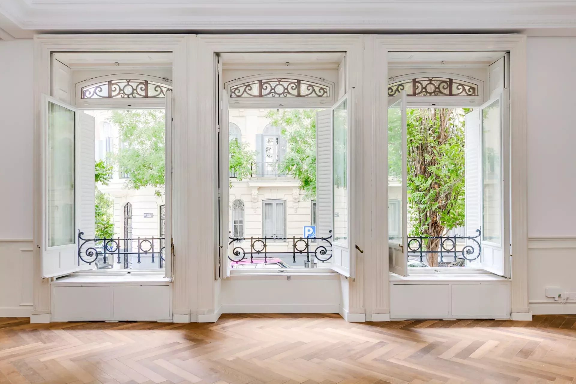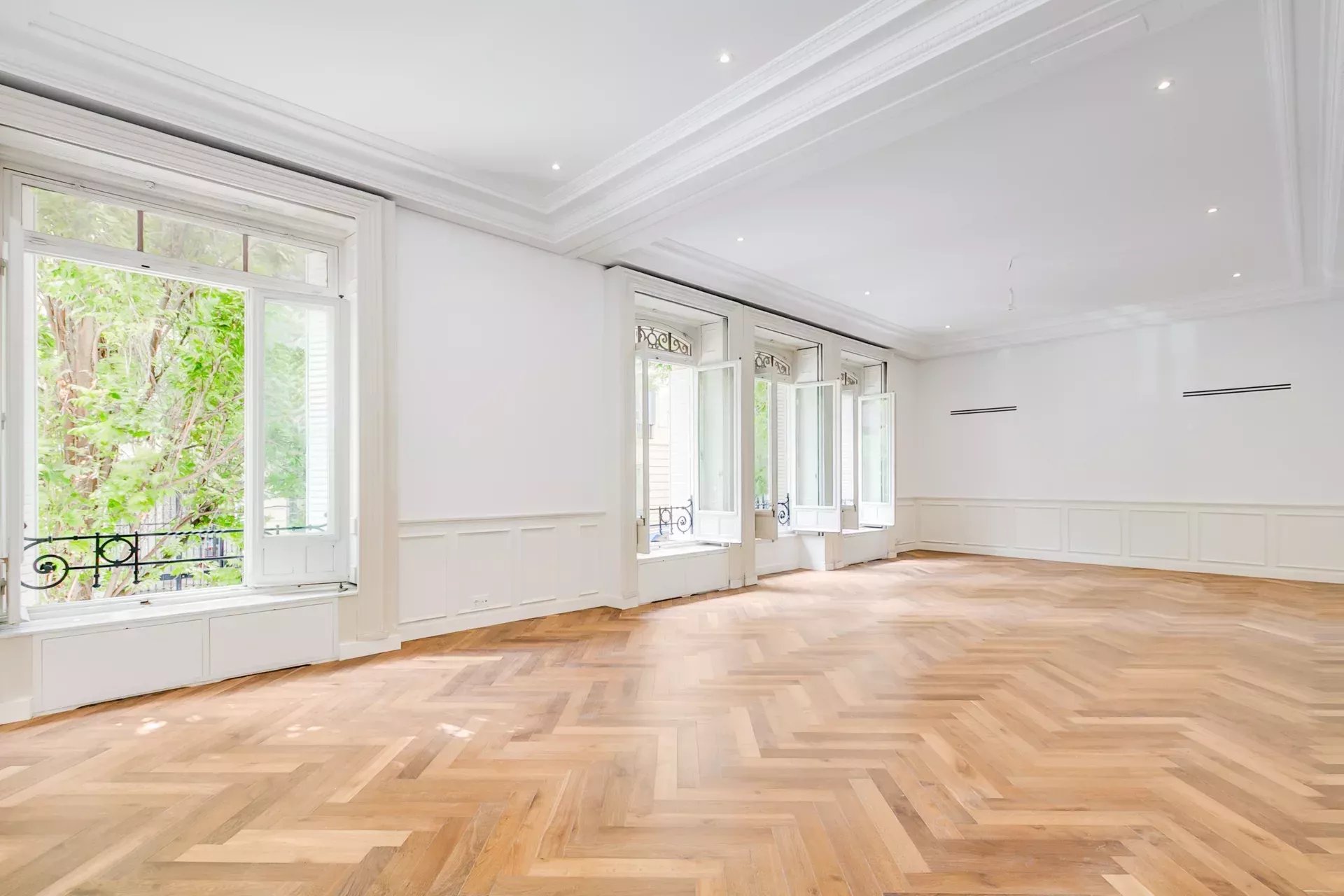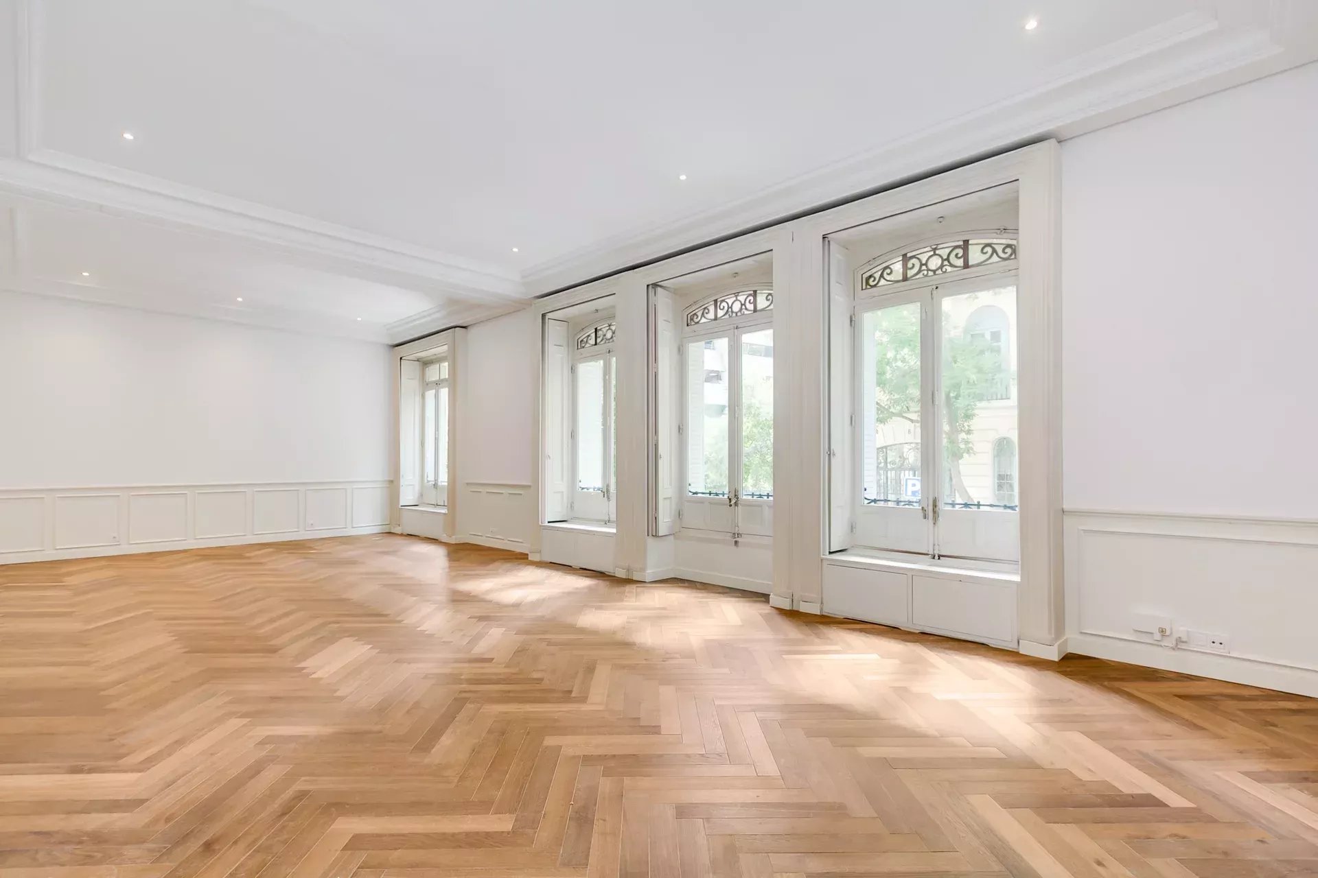 BARNES Madrid présente cette résidence exceptionnelle à louer de 319 m² construits et 280 m² habitables, située à l’étage noble d’un immeuble représentatif du milieu du XXe siècle, dans l’une des rues les plus emblématiques d’Almagro. L’immeuble, avec seulement quatre étages et huit voisins, dispose d’une entrée majestueuse, d’un ascenseur et d’un concierge résident, garantissant intimité et exclusivité.