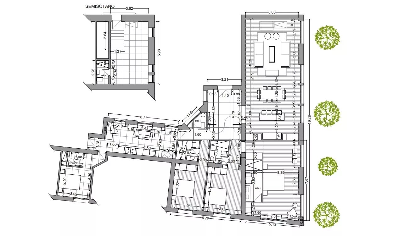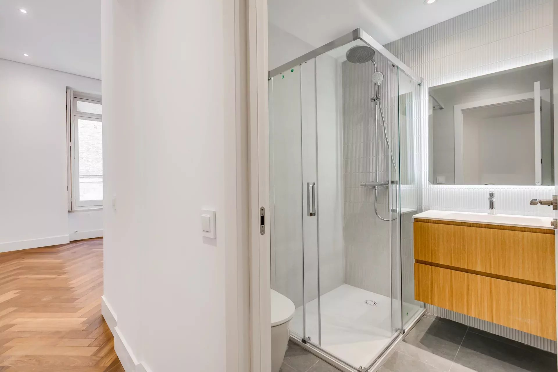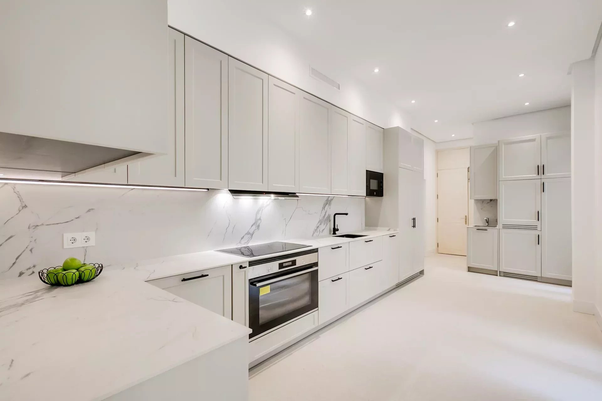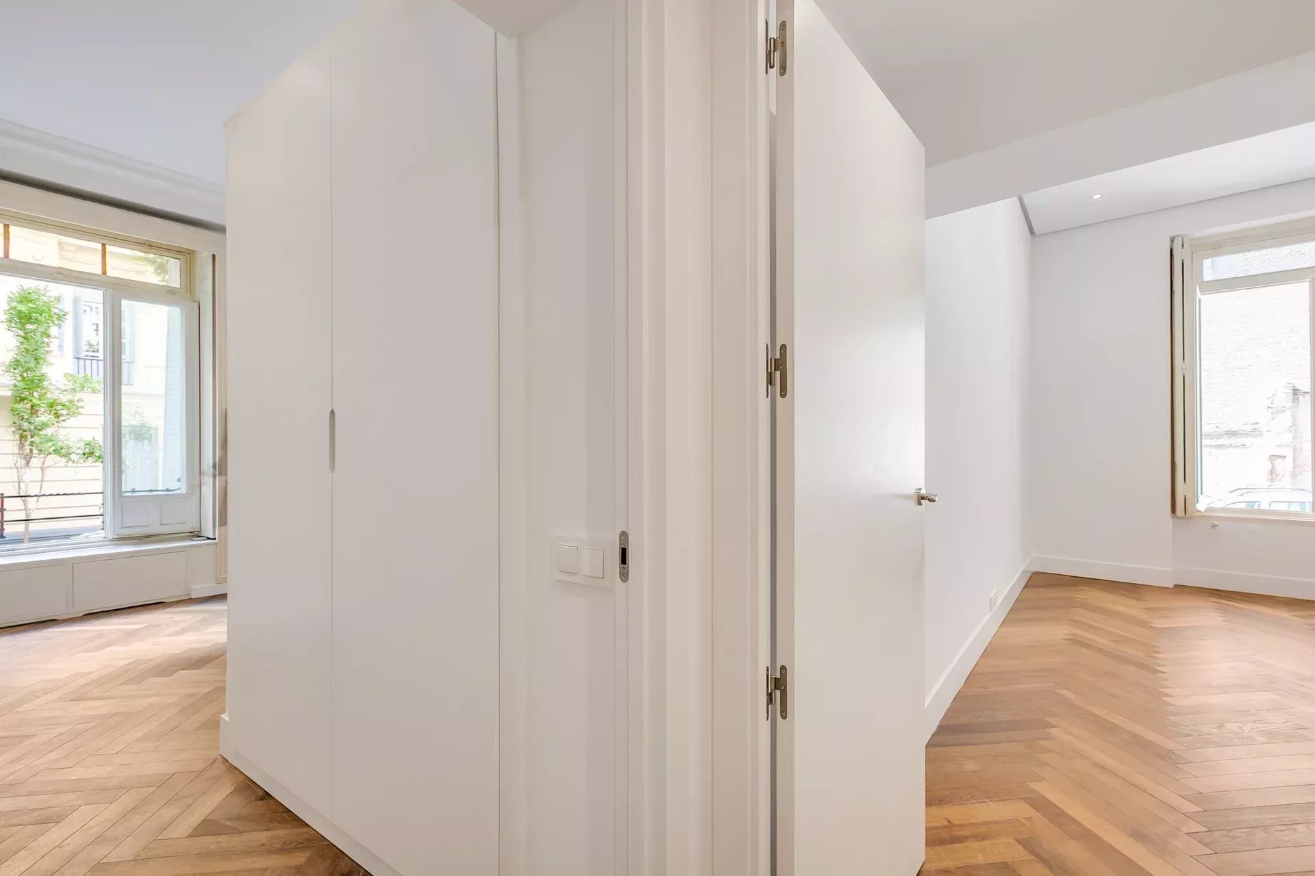 BARNES Madrid présente cette résidence exceptionnelle à louer de 319 m² construits et 280 m² habitables, située à l’étage noble d’un immeuble représentatif du milieu du XXe siècle, dans l’une des rues les plus emblématiques d’Almagro. L’immeuble, avec seulement quatre étages et huit voisins, dispose d’une entrée majestueuse, d’un ascenseur et d’un concierge résident, garantissant intimité et exclusivité.