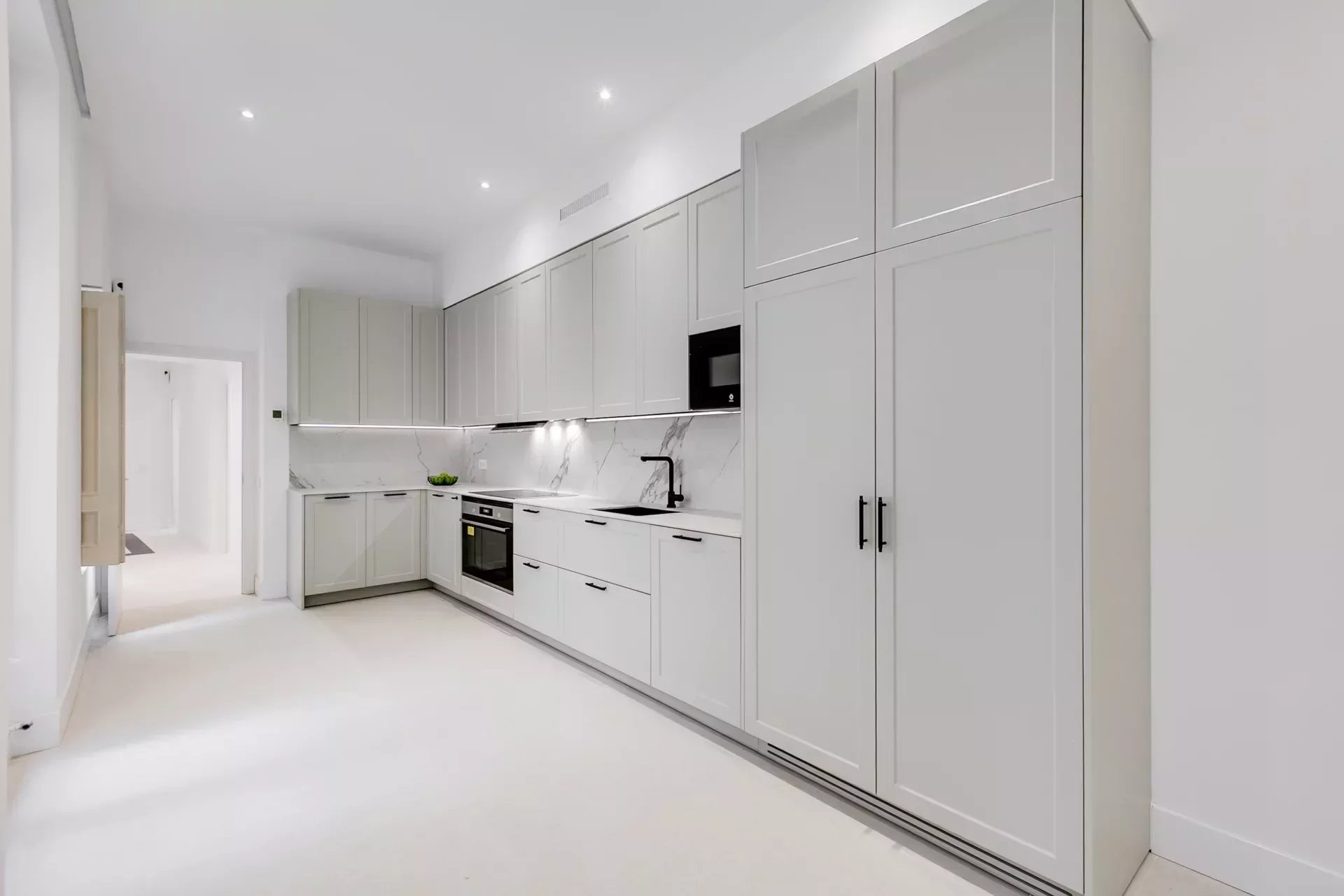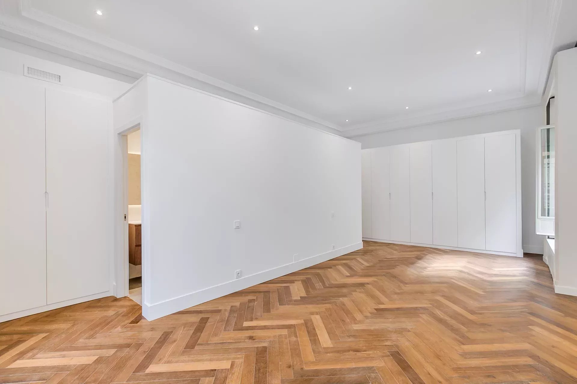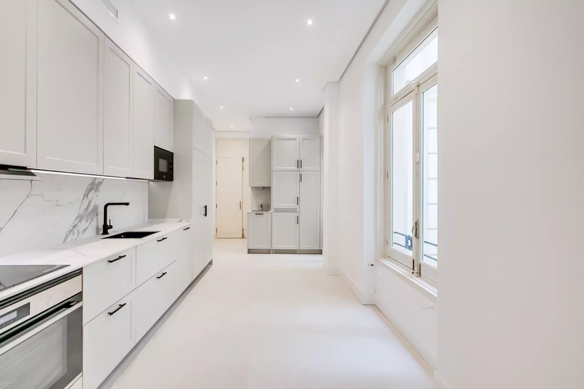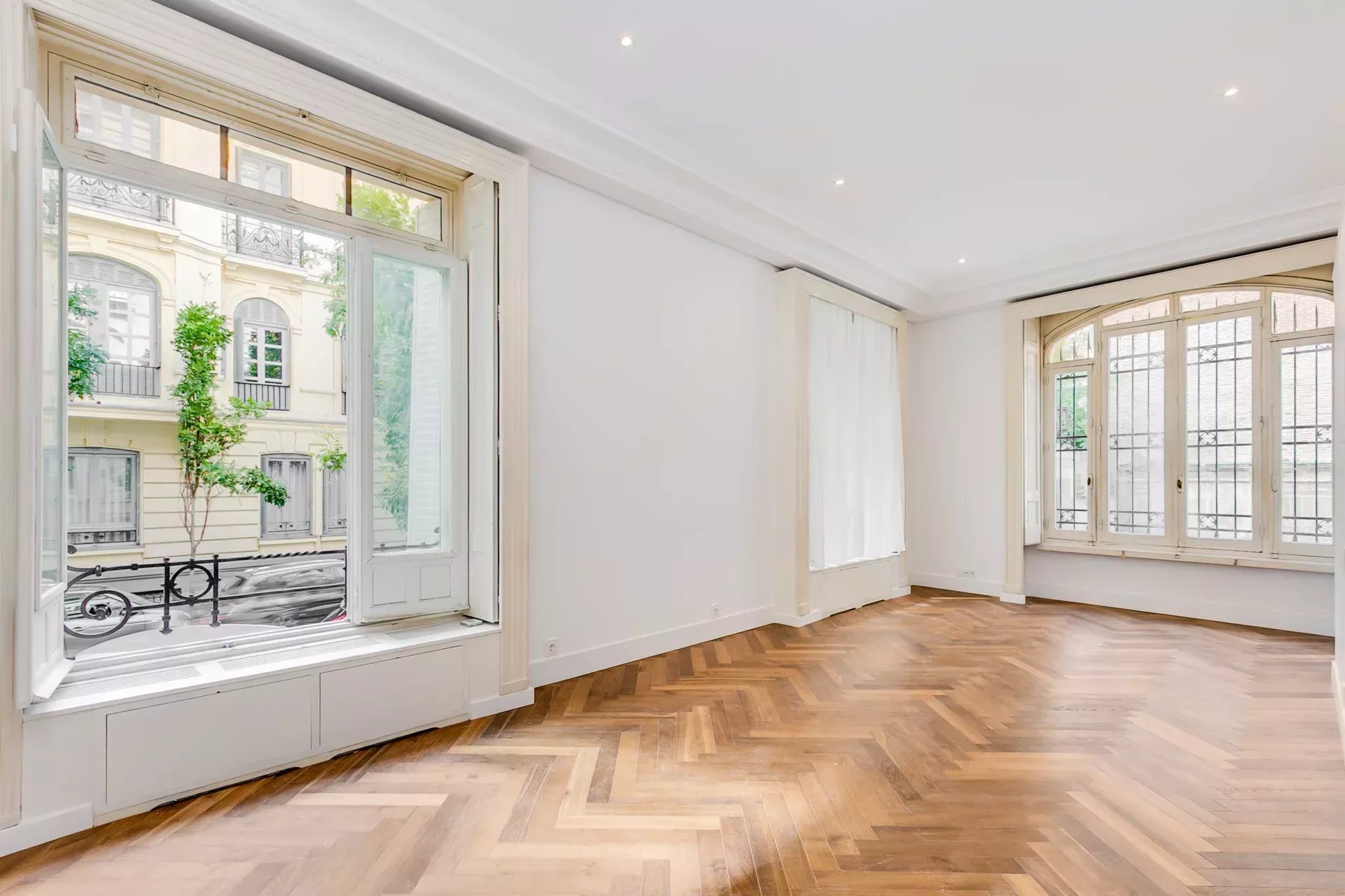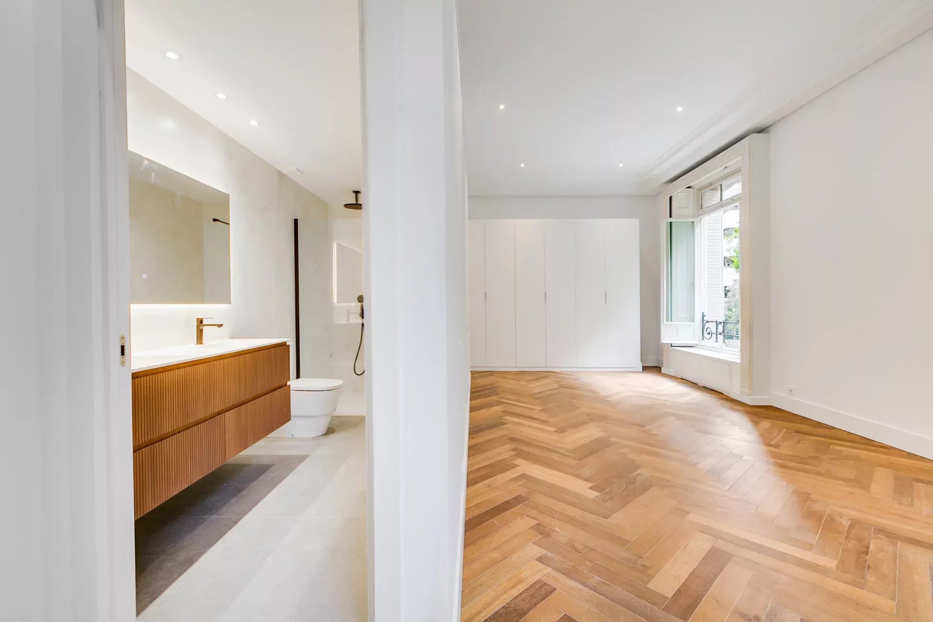 La propriété combine l’élégance classique avec un design intérieur contemporain et fonctionnel. Ses très hauts plafonds avec moulures d’origine, parquets en chêne naturel et grandes baies vitrées apportent caractère, volume et une luminosité exceptionnelle grâce à son orientation sud et à sa condition de logement entièrement extérieur.