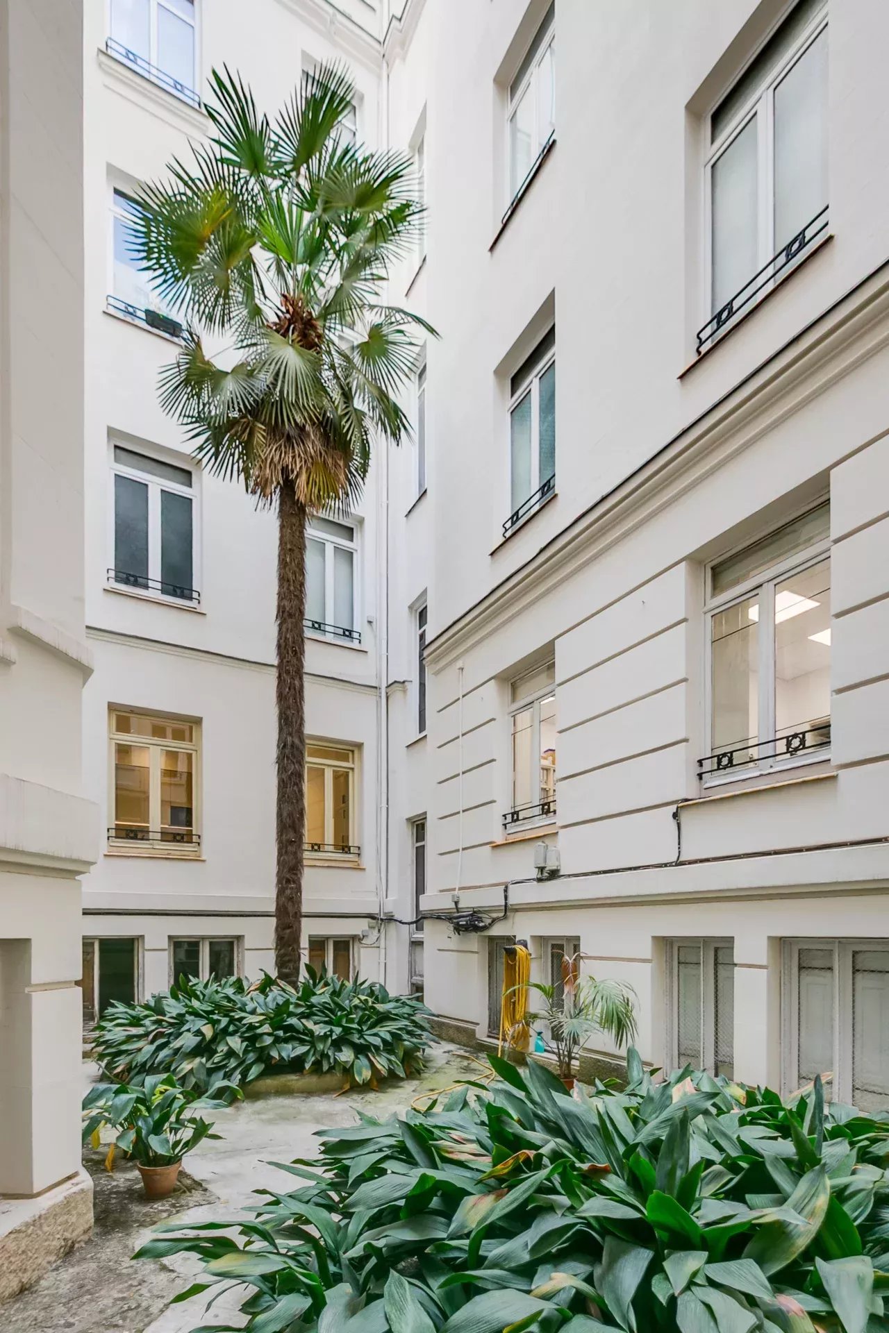 L’immeuble dispose d’une cour intérieure paysagée et d’une entrée représentative.