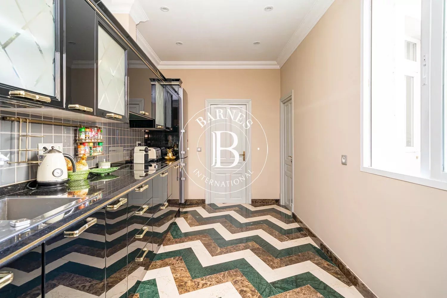 La distribution comprend cinq chambres, dont trois en suite, garantissant confort et intimité, ainsi que deux chambres supplémentaires avec salles de bains indépendantes. La cuisine entièrement équipée avec des électroménagers haut de gamme s’ouvre harmonieusement sur le salon-salle à manger, un espace généreux, élégant et idéal aussi bien pour la vie quotidienne que pour recevoir.