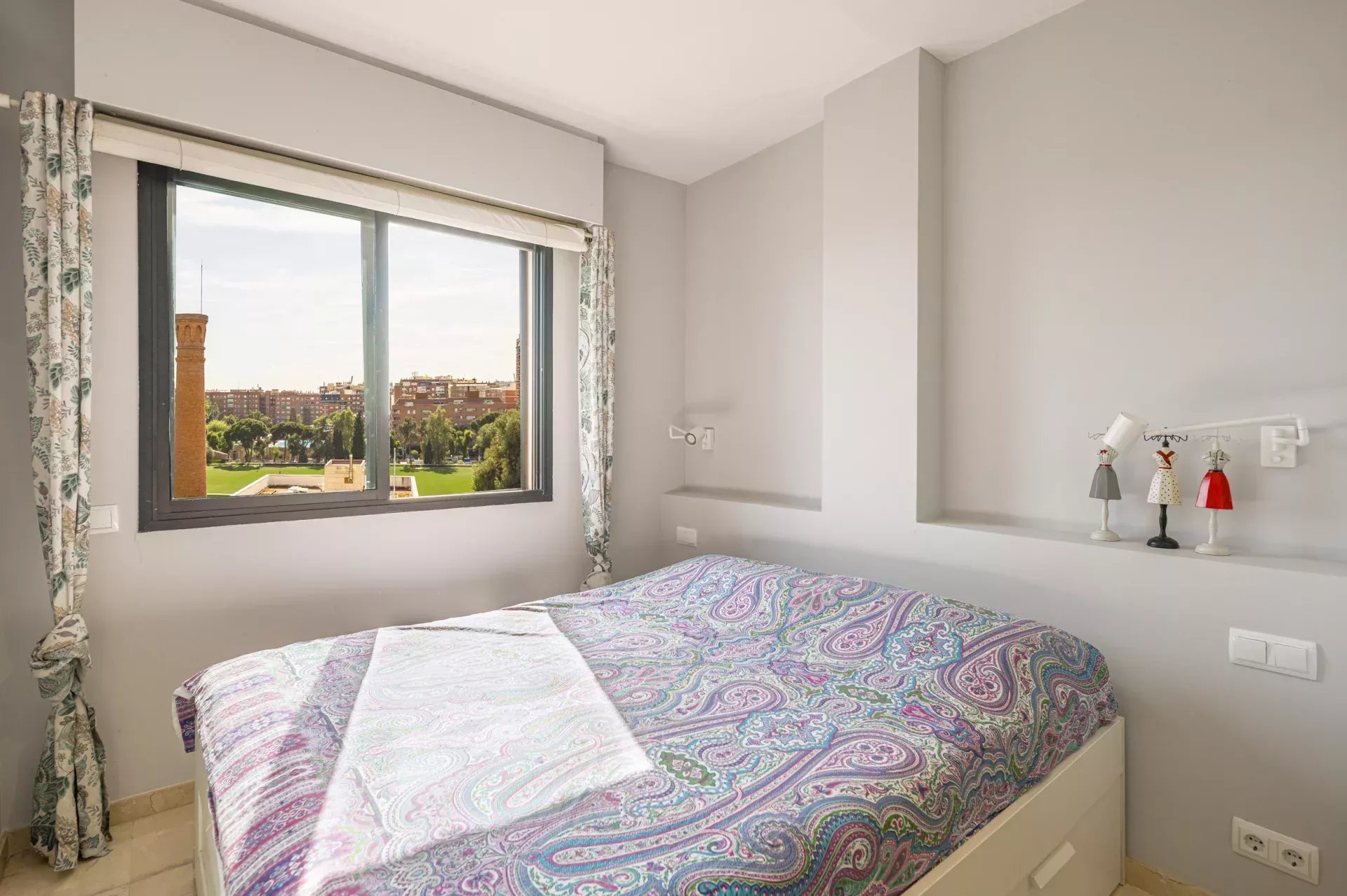 L'appartement dispose d'une grande chambre lumineuse avec vue, où chaque lever de soleil est une invitation à profiter de la lumière naturelle qui inonde tout l'espace.