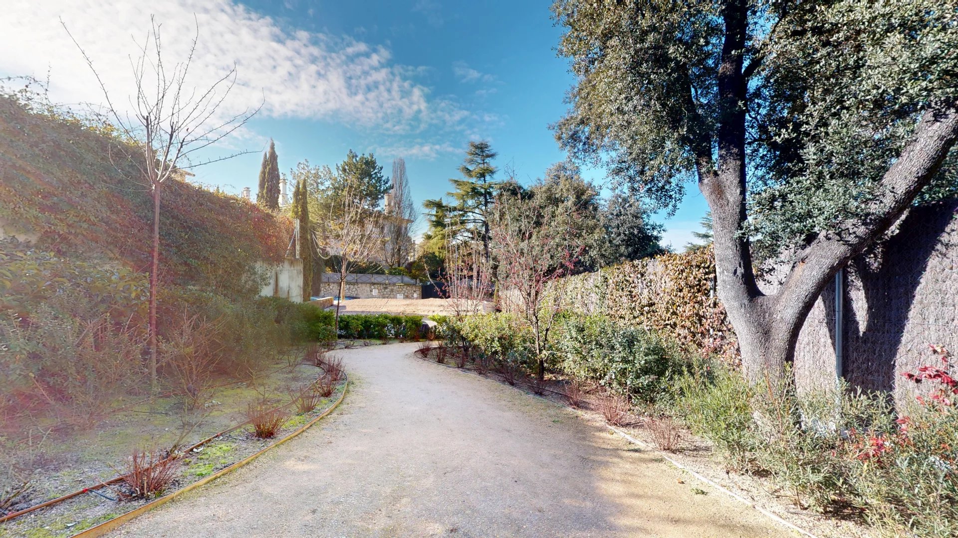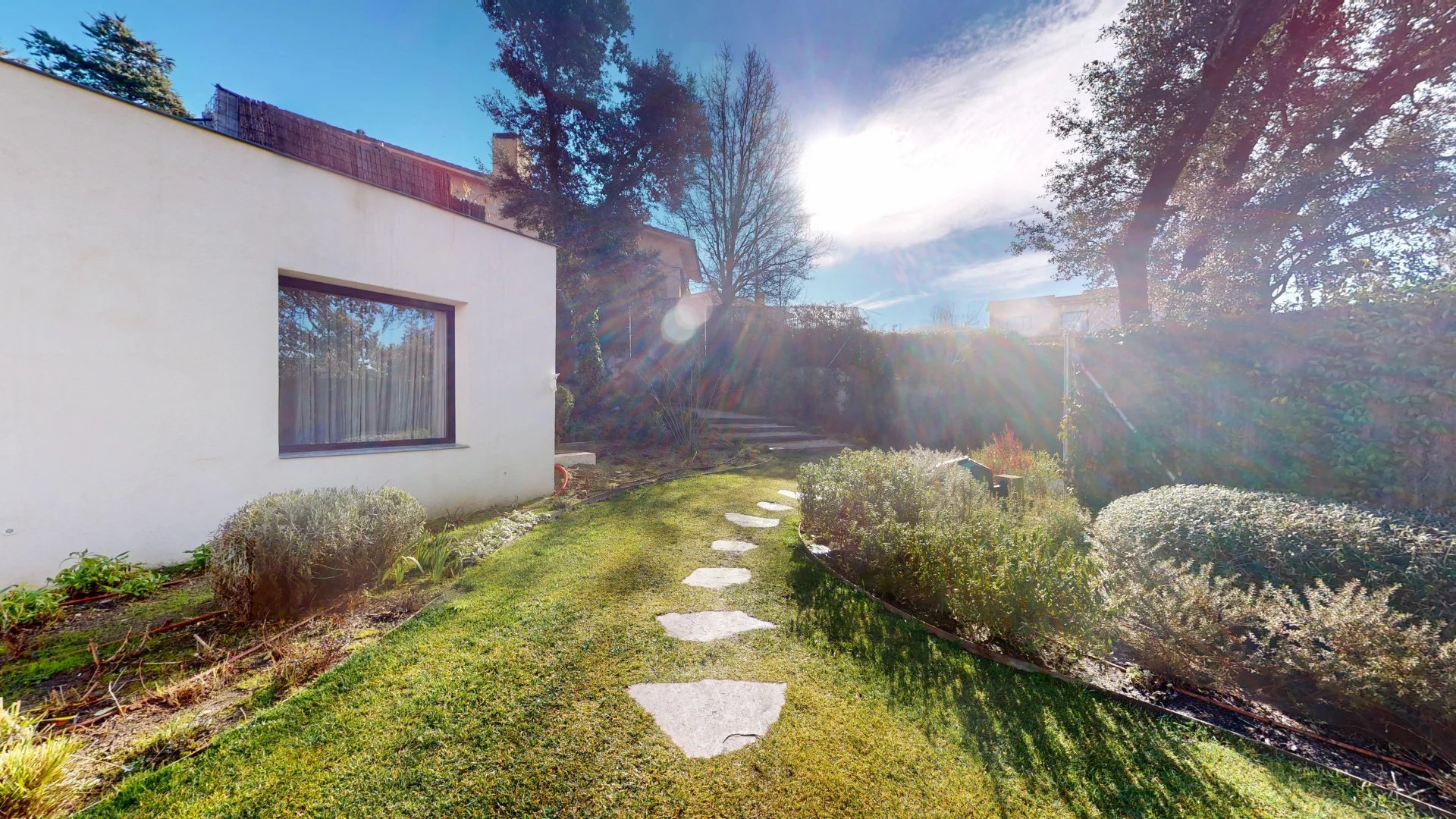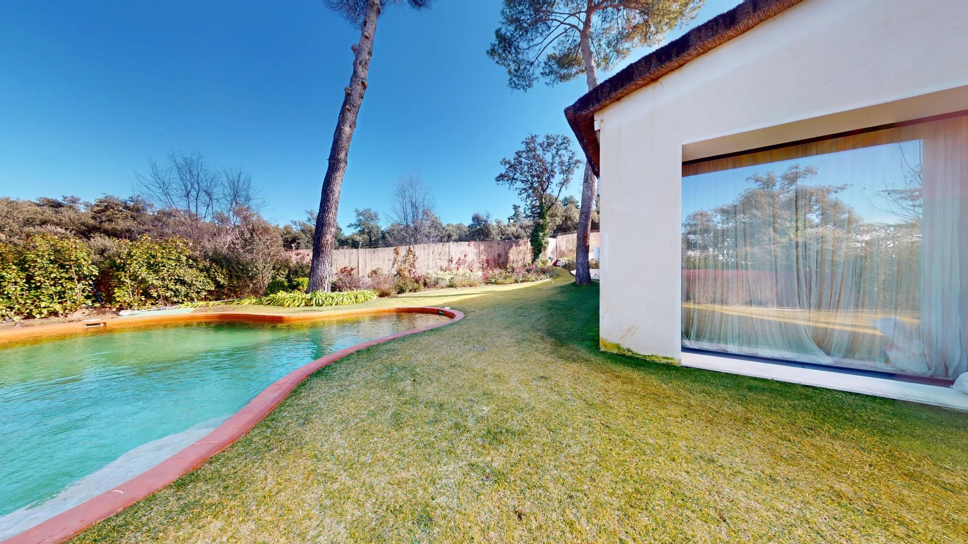 À l'extérieur, la villa s'ouvre sur un jardin soigneusement aménagé qui abrite une magnifique piscine privée, véritable havre de sérénité. La propriété dispose également d'un espace de stationnement, alliant praticité et discrétion.