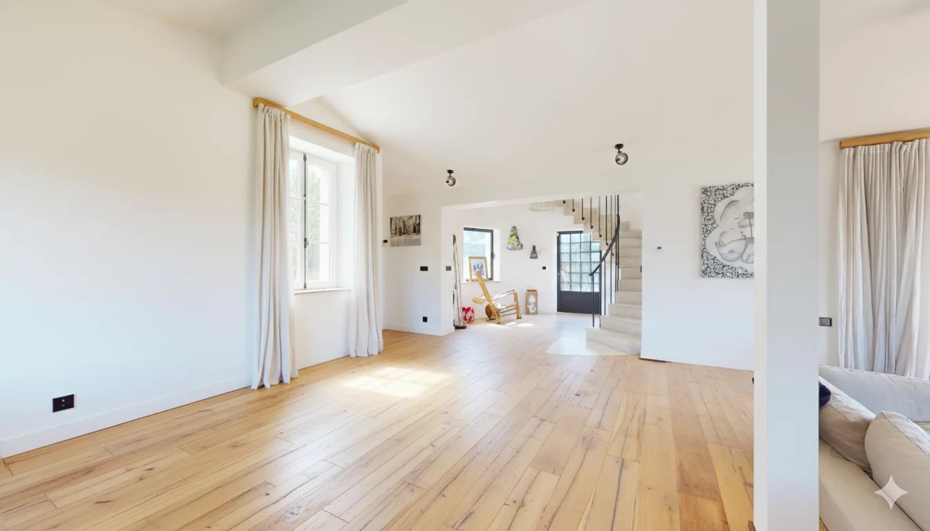 La propriété, entièrement rénovée avec un soin exquis apporté aux détails, offre environ 600 m² de surface habitable où l'élégance contemporaine se marie au confort le plus absolu.