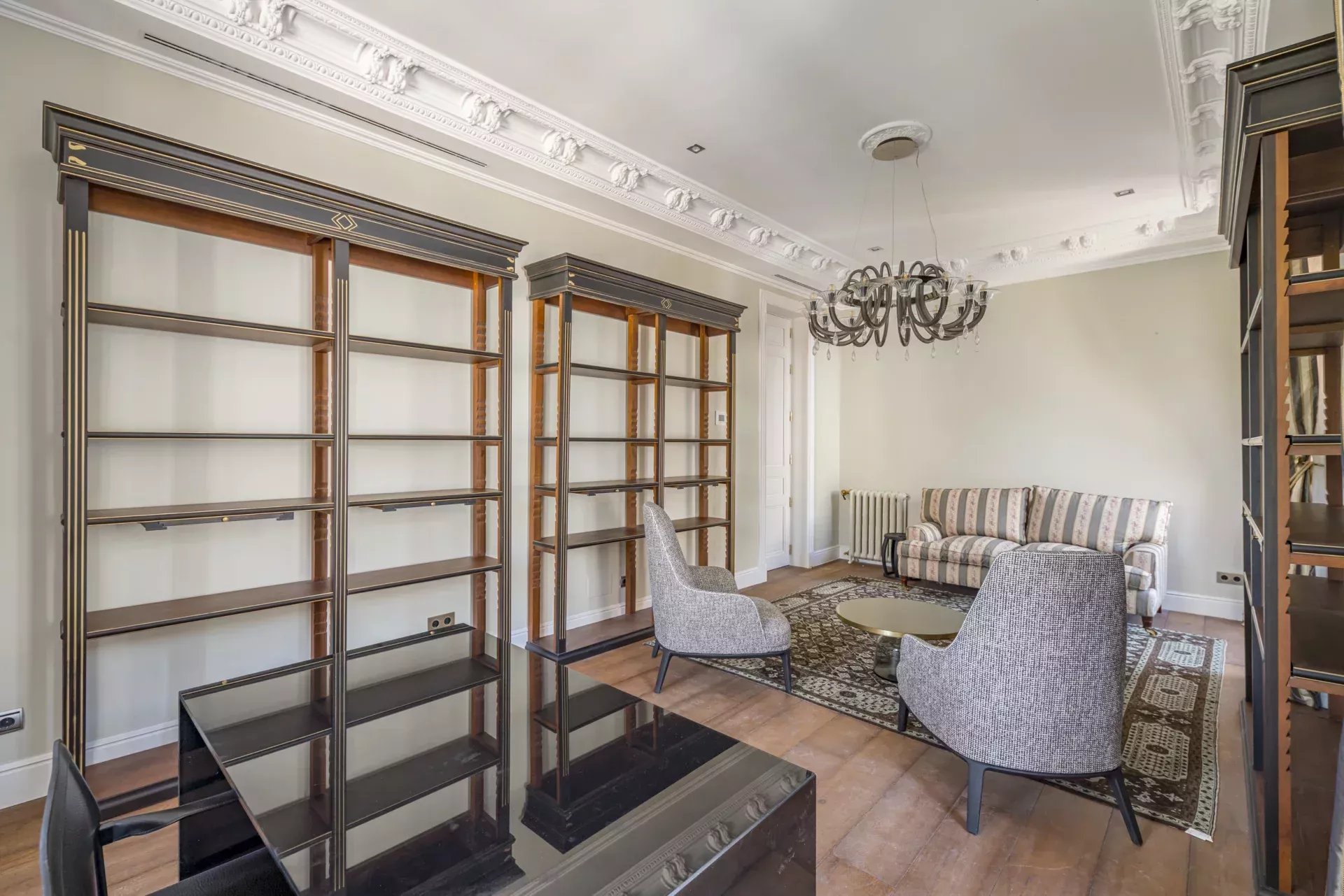 L'appartement est loué entièrement meublé, y compris des rideaux et des lampes de la plus haute qualité et au design raffiné. Cette résidence unique représente le summum du luxe et de l'exclusivité au cœur de Madrid.
