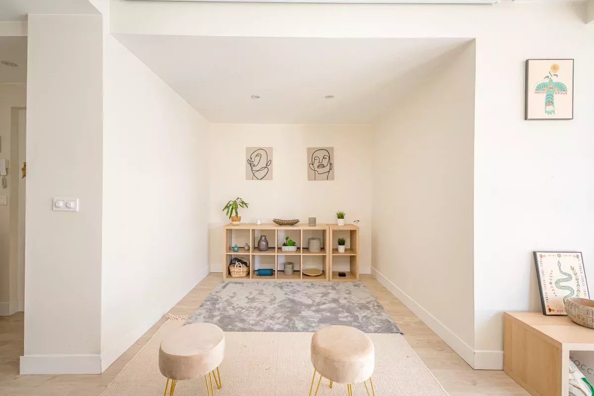 Il comprend 2 chambres doubles, toutes deux avec salle de bain attenante, ainsi qu’un grand séjour-salle à manger avec cuisine américaine insonorisée. Parfait pour se détendre ou travailler à domicile en toute tranquillité.