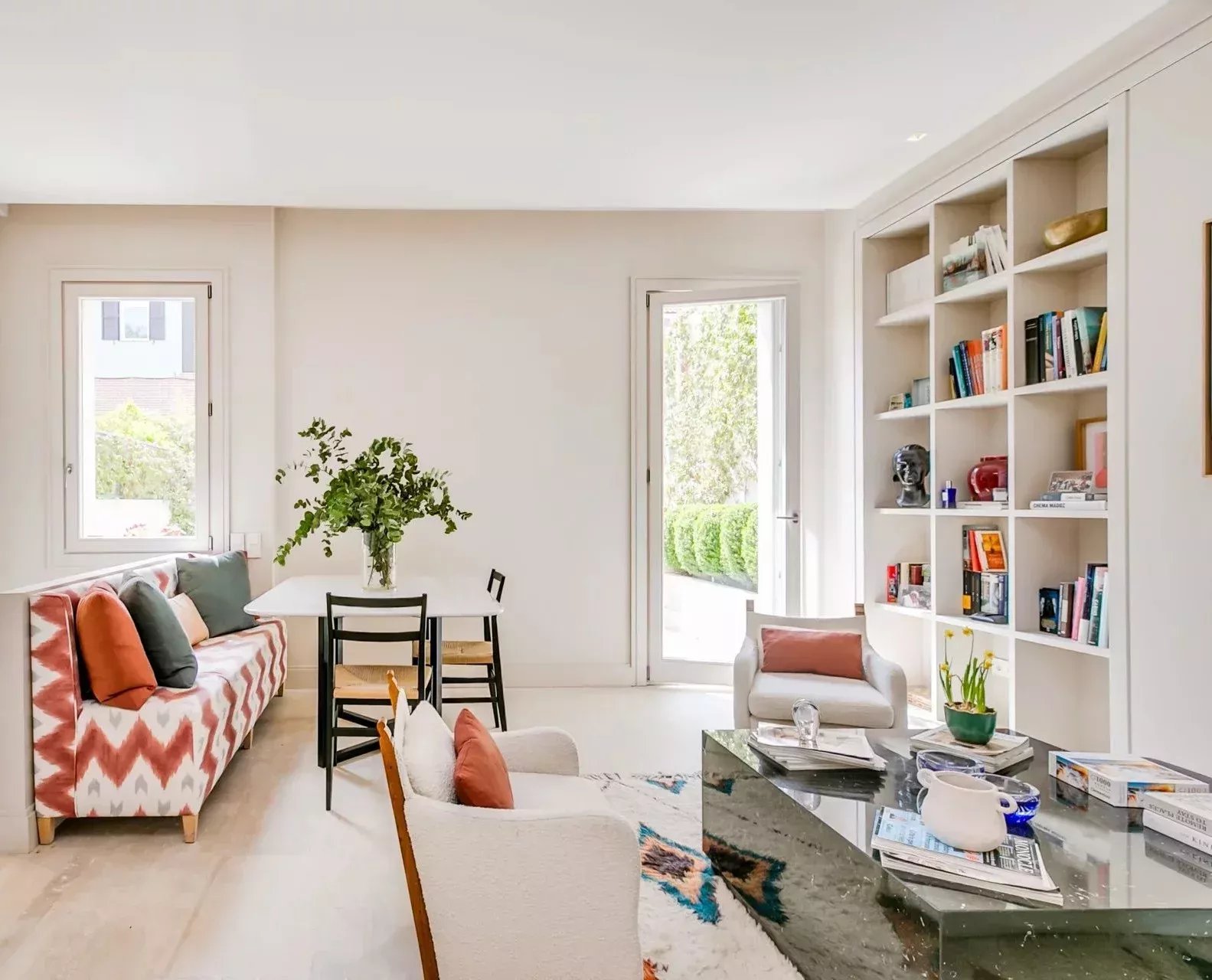 Chaque espace de cette résidence d’exception a été pensé avec soin pour offrir un cadre alliant sophistication et confort, agrémenté d’un magnifique jardin, véritable oasis de tranquillité en plein cœur de Madrid.
