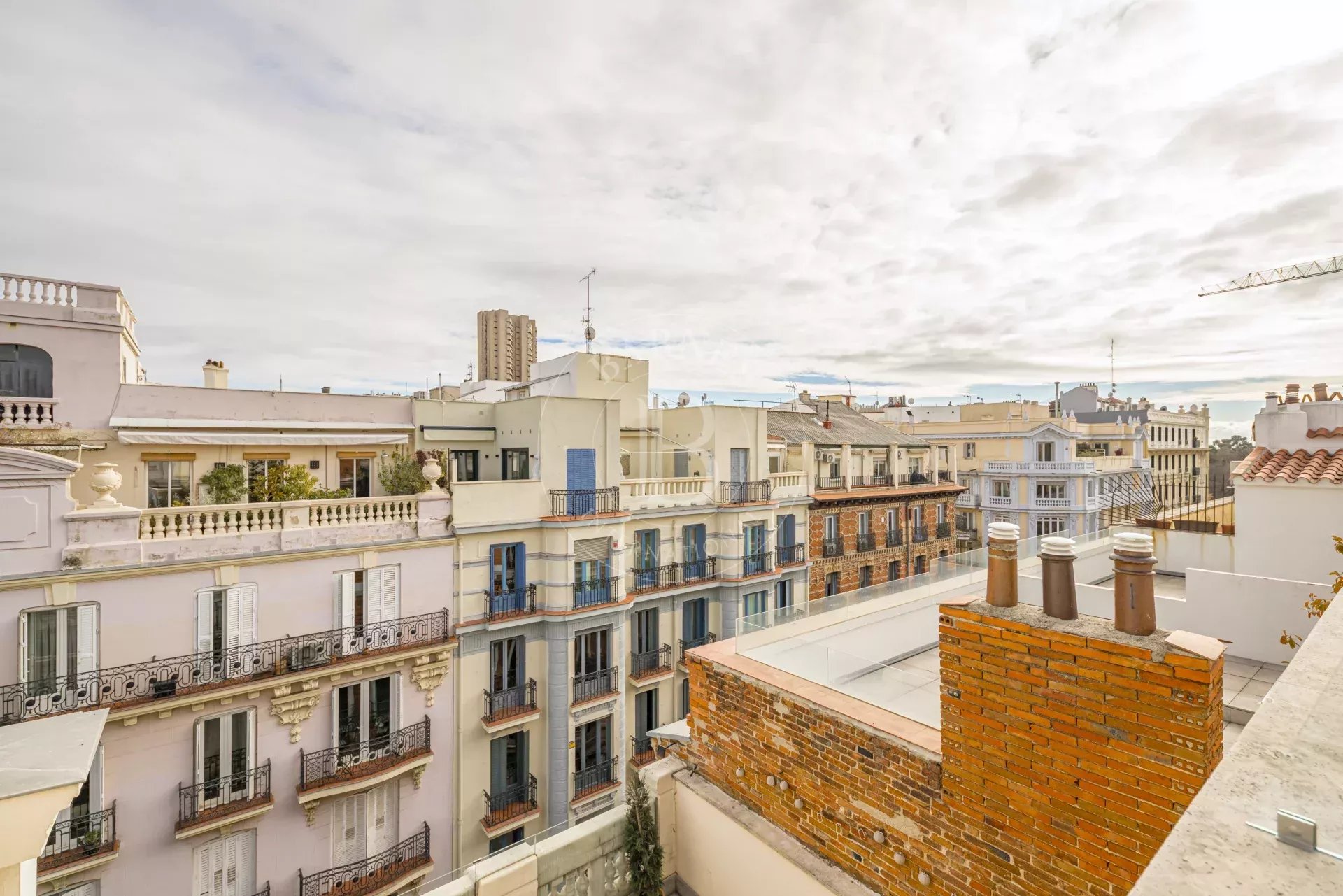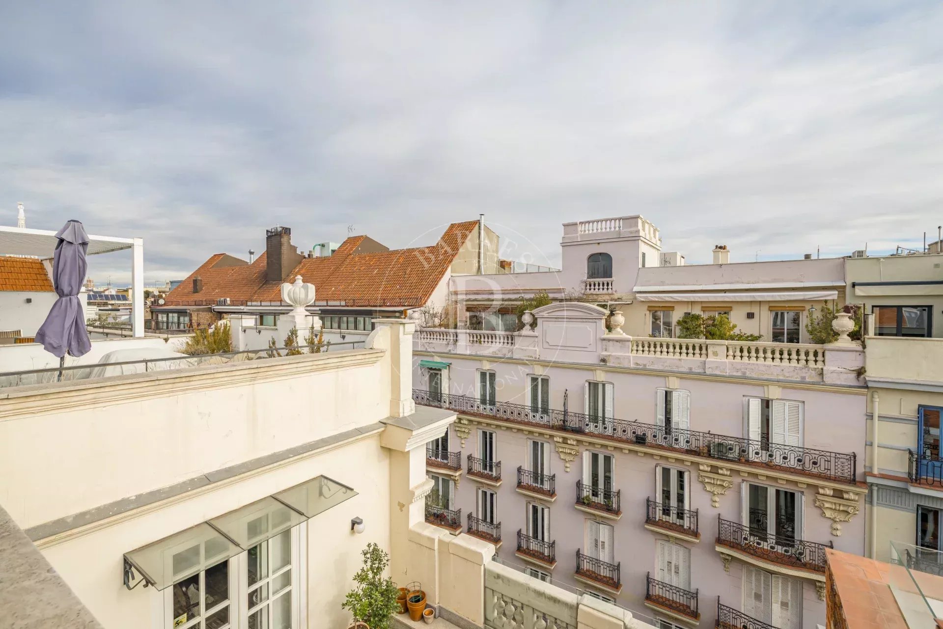 BARNES Madrid vend ce magnifique penthouse rénové de 120 m² situé dans le prestigieux quartier de Salamanque, secteur Recoletos.